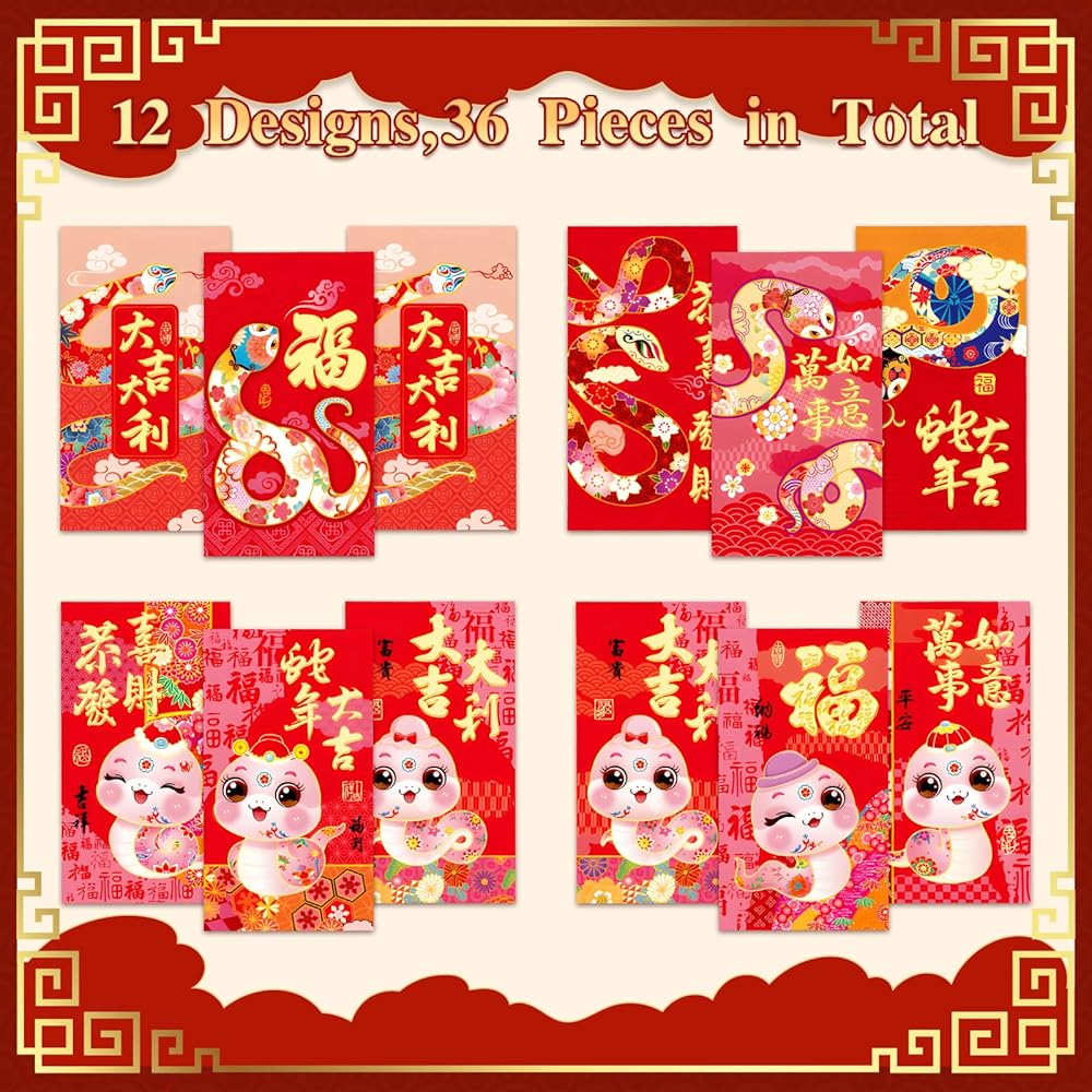 • محتوى العبوة: سوف تحصل على 36 قطعة من الأظرف الحمراء الصينية، بما في ذلك 12 نمطًا مختلفًا. كمية كافية، يمكنك منحها للأشخاص من حولك للتعبير عن أمنياتك الصادقة.