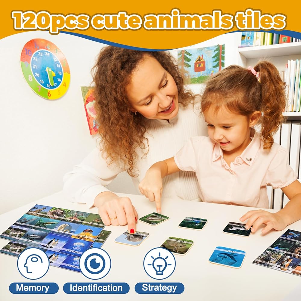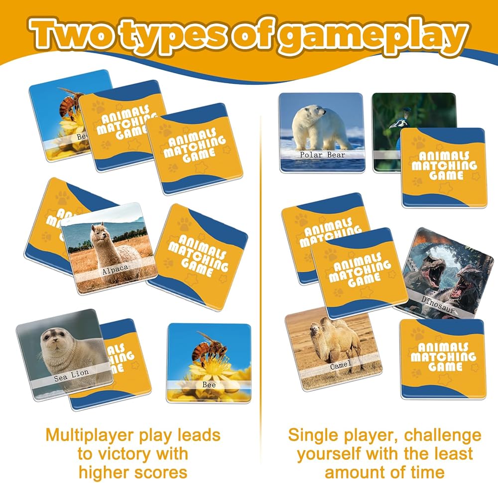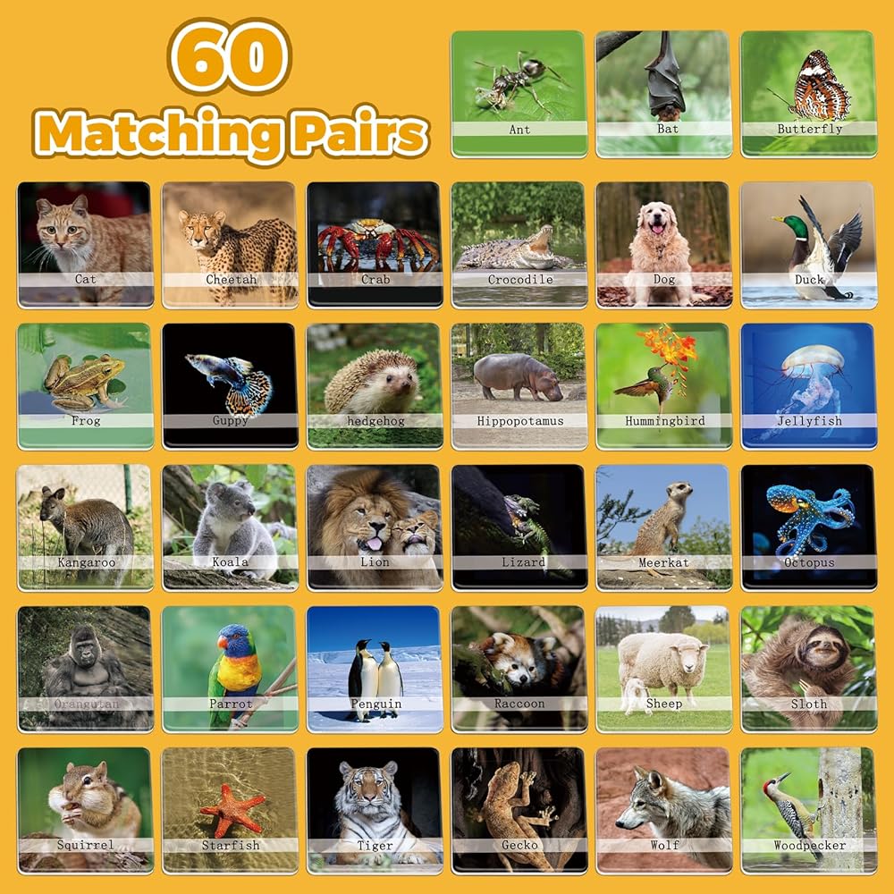 Animal Matching Game for Kids 120PCS Memory Card Game for Toddlers Preschool Learning Activities Memory Matching Cards Boys Girls Family Board Game