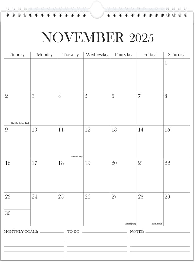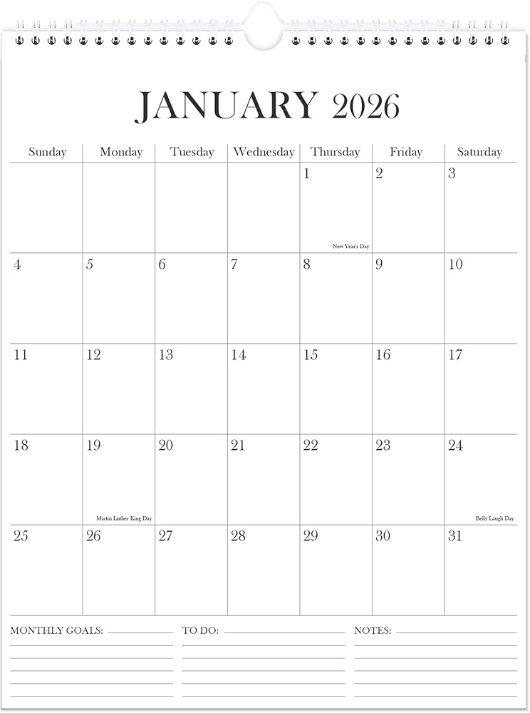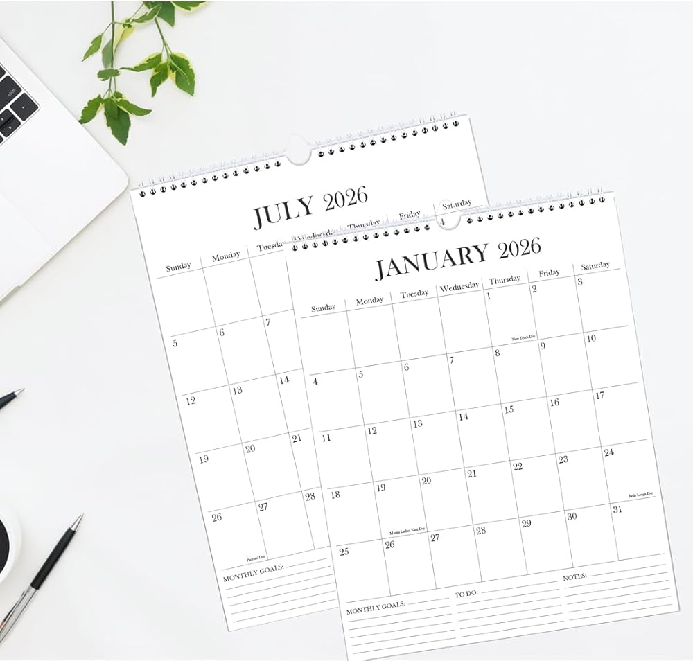 STURDY WIRE BINDING - The monthly calendar 2025-2026 with strong twin-wire binding and the hanging loop helps the wall calendar 2025 hangs on the wall easily and sturdy.