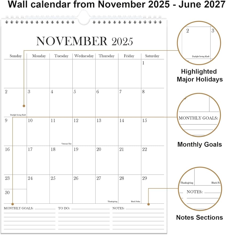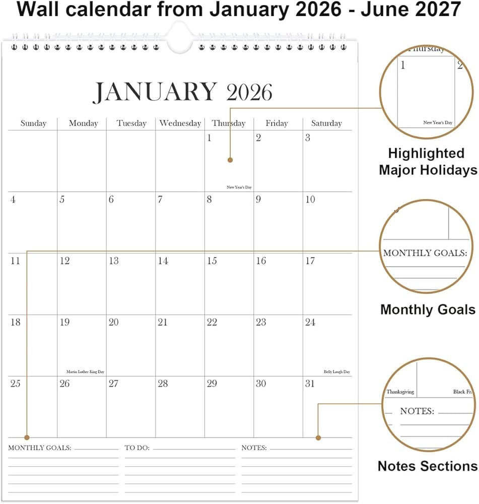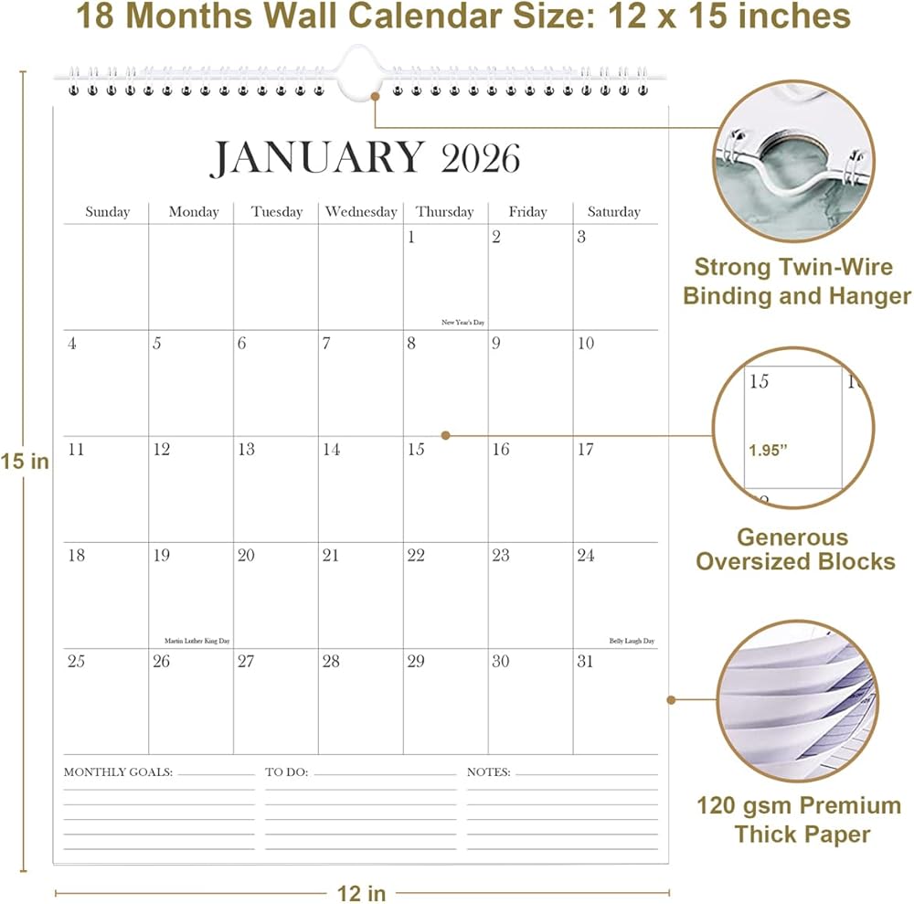 2025-2026 CALENDAR - 18 months wall calendar run from January 2025 to June 2026, the size of this 2025 wall calendar is 11.5" x 14.5", focus on easy and efficient planning, scheduling and tracking for a manageable life.