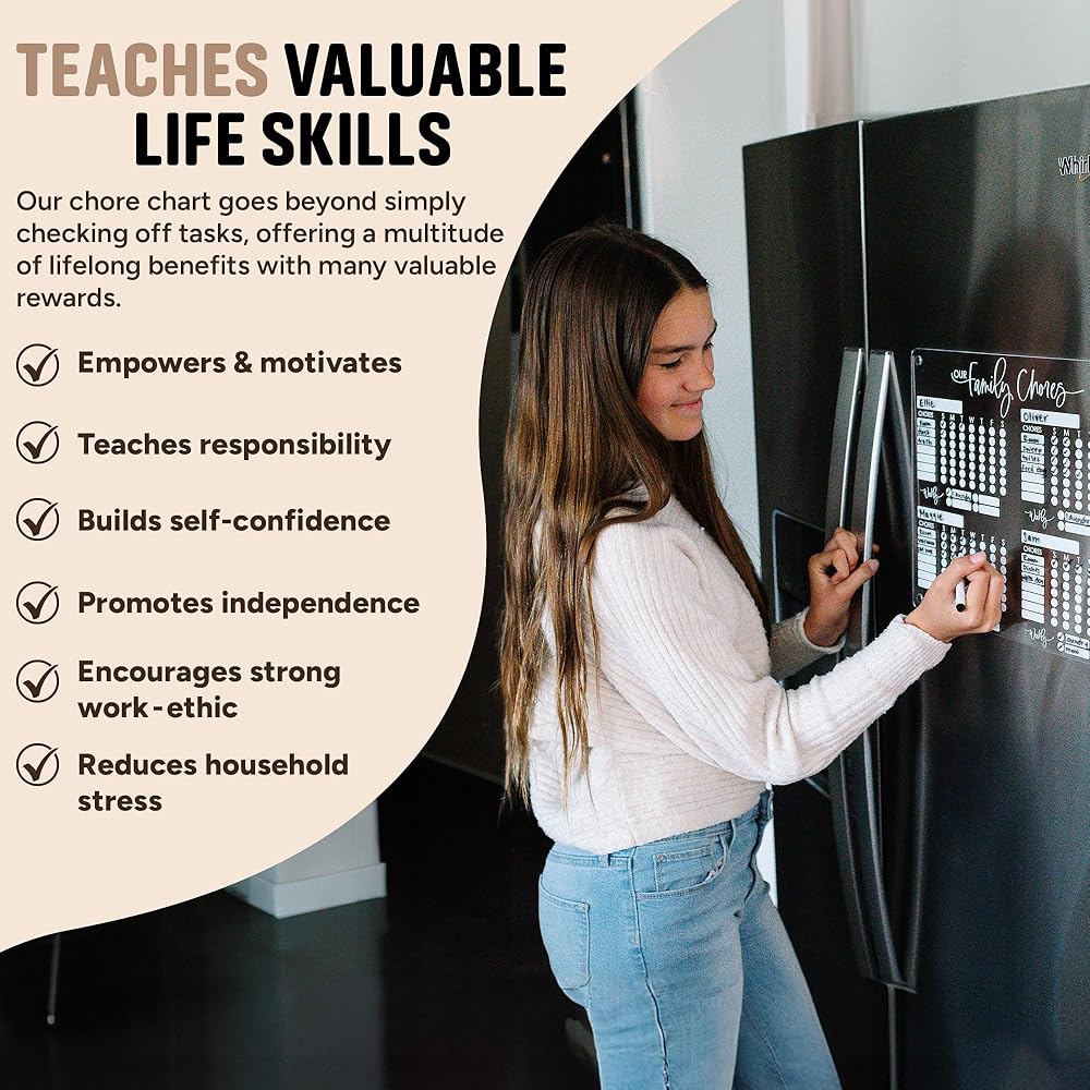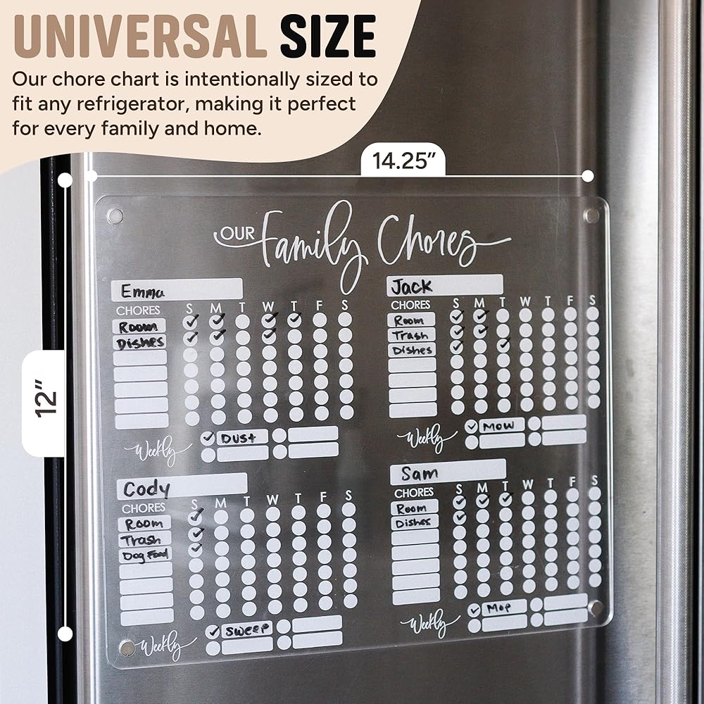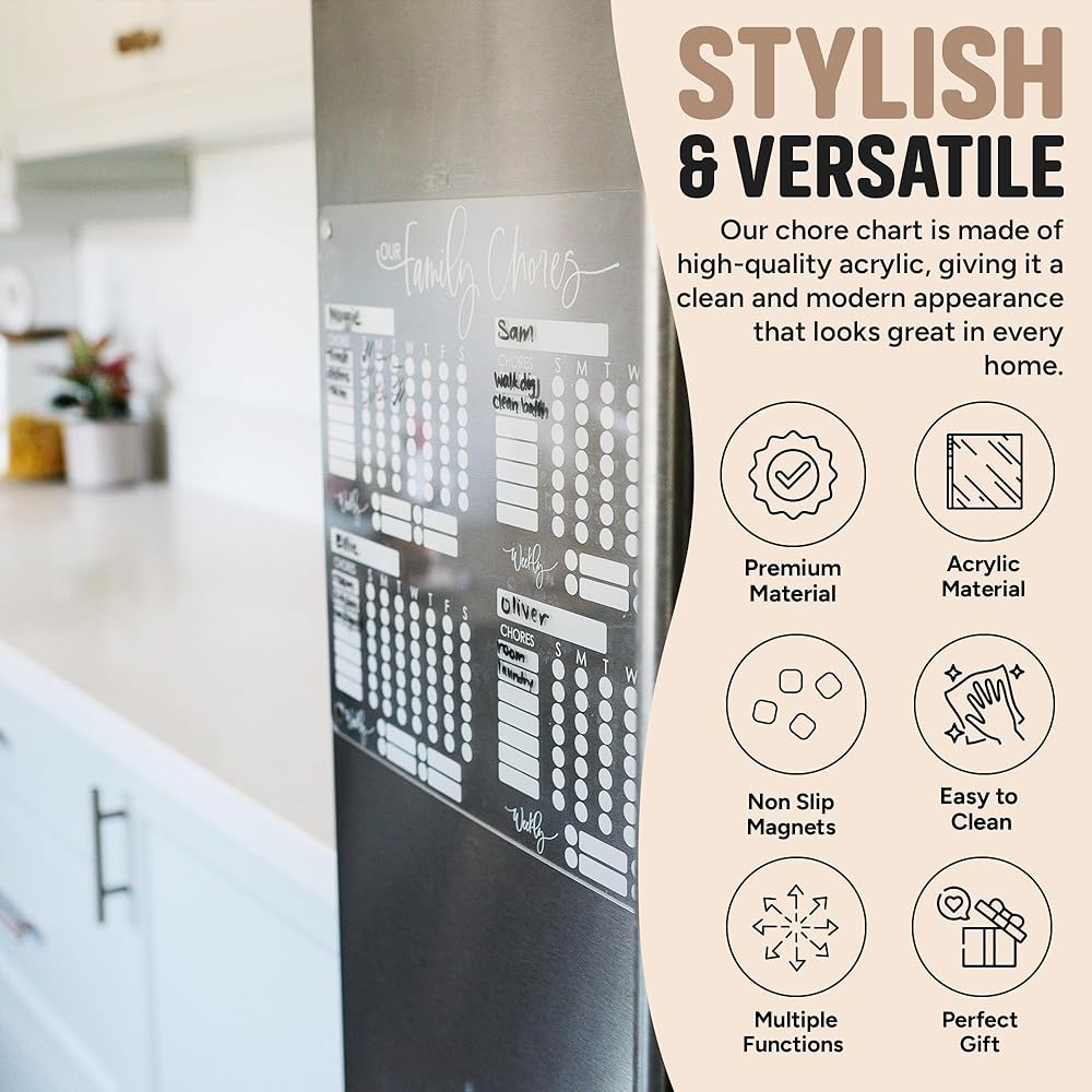 مخطط أكريليك أنيق ومتعدد الاستخدامات: مخطط الأعمال الخاص بنا للأطفال المتعددين مصنوع من الأكريليك الشفاف عالي الجودة المصمم لتحمل الاستخدام اليومي. توفر المغناطيسات الموجودة في الزوايا تثبيتًا آمنًا للثلاجة، بينما تبدو نظيفة وأنيقة لأي نمط ديكور. ليس من السابق لأوانه أبدًا أن تبدأ أطفالك الصغار بمخطط المهام الروتينية هذا للأطفال الصغار.