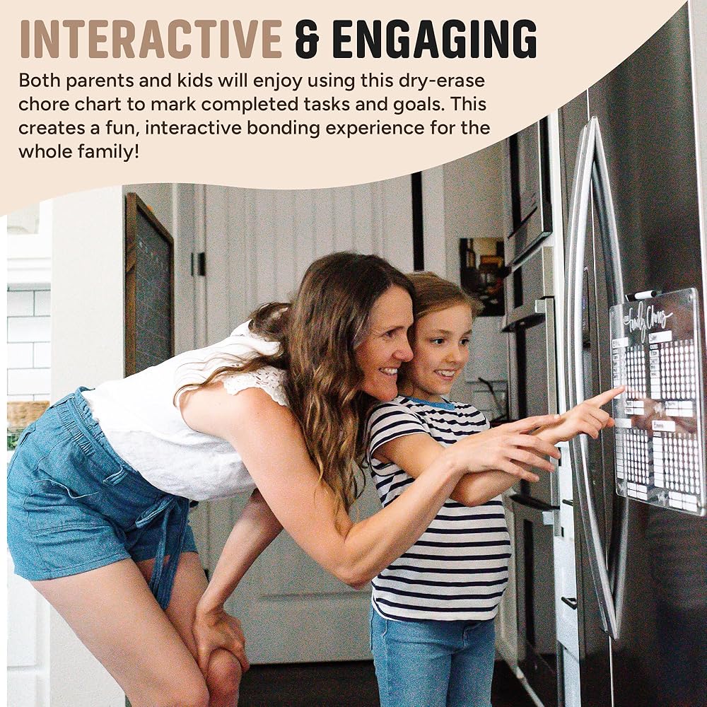 تفاعلية وممتعة: سيستمتع الأطفال باستخدام مخطط المهام الجافة للأطفال للتحقق من الأعمال المكتملة، مما يخلق تجربة ممتعة وتفاعلية. يوفر غطاء الممحاة الخاص بلوحة المسح الجافة المغناطيسية مسحًا سهلاً ومريحًا، مما يضمن بقاء لوحة المهام الخاصة بك للأطفال نظيفة وجاهزة لمجموعة المهام التالية. ستحب أيضًا تعليم مسؤولية عائلتك واستقلاليتها من خلال لوحة المهام الخاصة بقائمة المهام الخاصة بي!