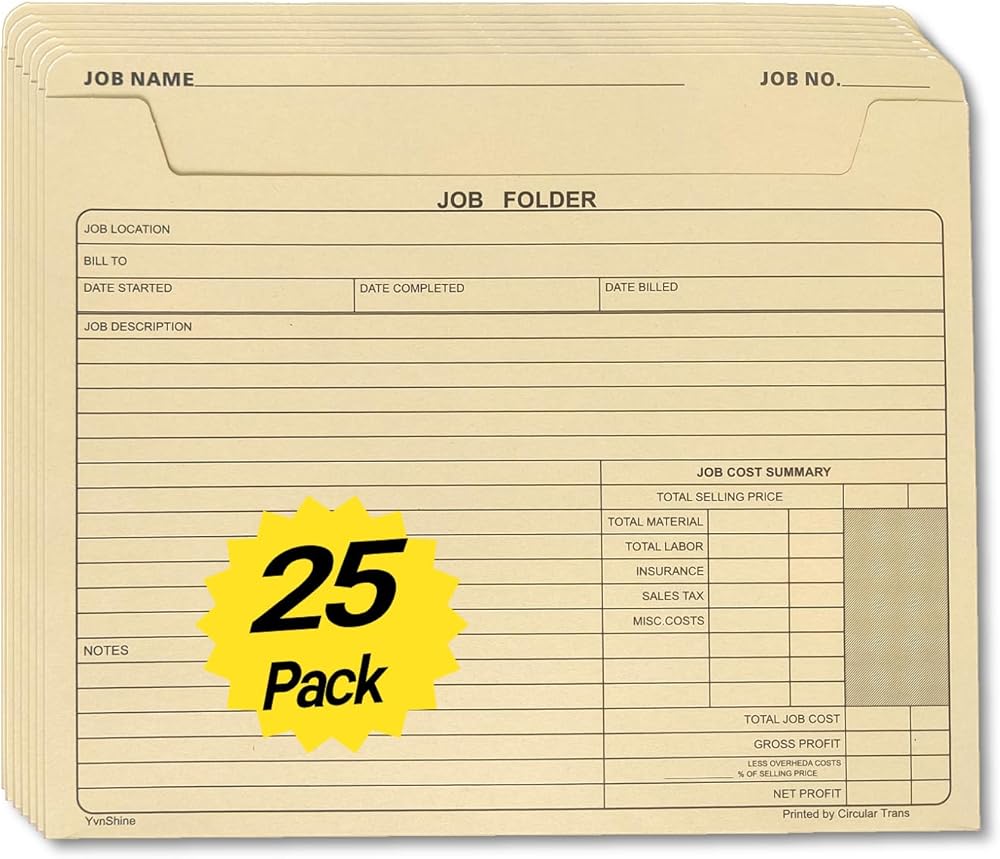تبسيط إدارة المشروع: تحتوي المجلدات على رؤوس نماذج الوظائف الأساسية المطبوعة مسبقًا مع مساحة كبيرة للتعليقات الوصفية ومعلومات التكلفة، وتبسيط إدارة المشروع وحفظ السجلات.
