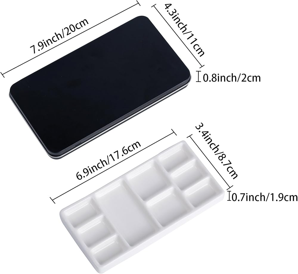 Expertly Crafted: Our Watercolor Palette delivers an unparalleled experience with its professional-grade design. Comprised of high quality ceramic material housed in a robust metal box, this carefully measured 18x9x2cm palette fits seamlessly into a 20x11x2cm metal box. Custom-made padding ensures the palette stays secure and steady within the box, turning it into a convenient storage space for brushes and paints when the palette is in use.