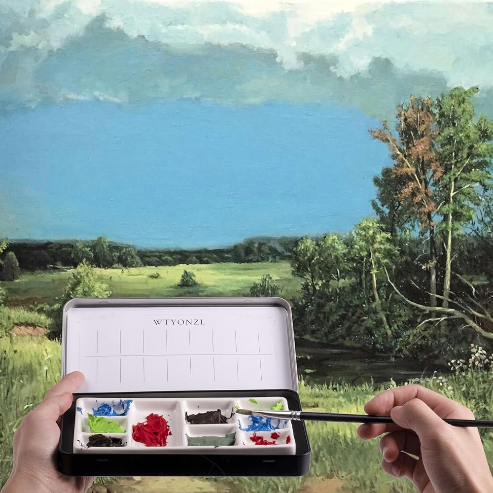 Portable and Compact: Our palette's compact size makes it a joy to hold, whether you're in your home, studio or outdoor environment. It's designed for easy portability, perfect for on-the-go sketching and painting. Simply toss it into your backpack and you're ready for your next creative endeavor, wherever that may be!