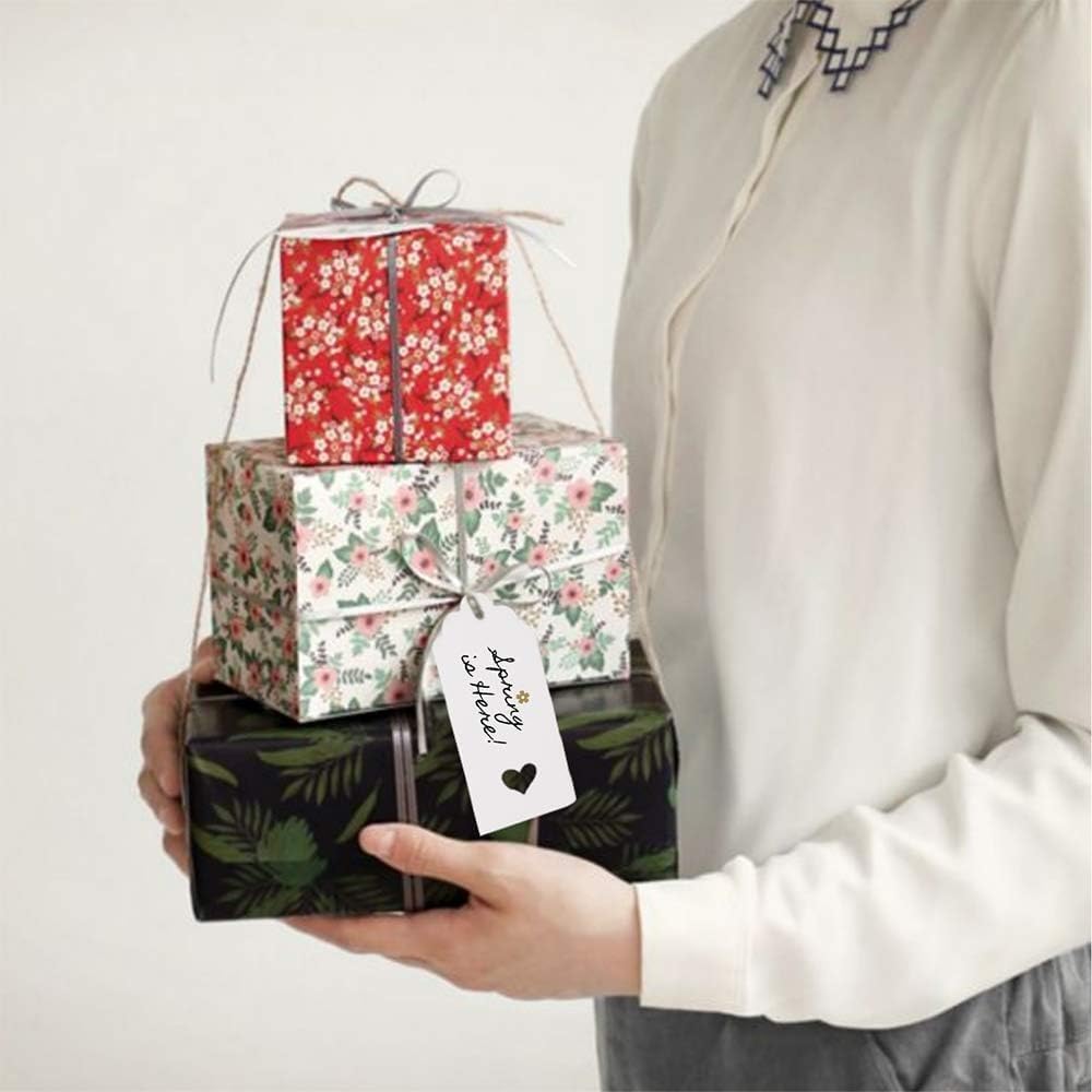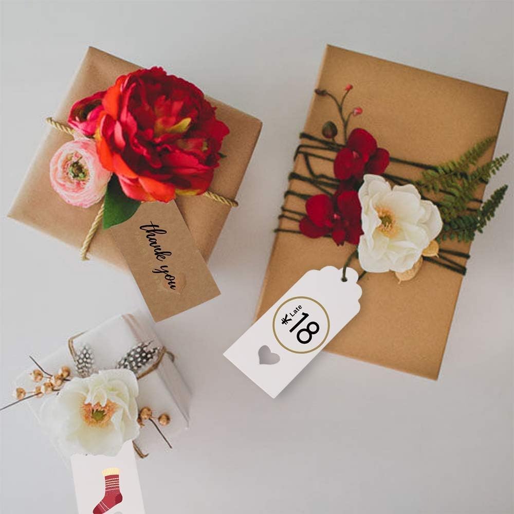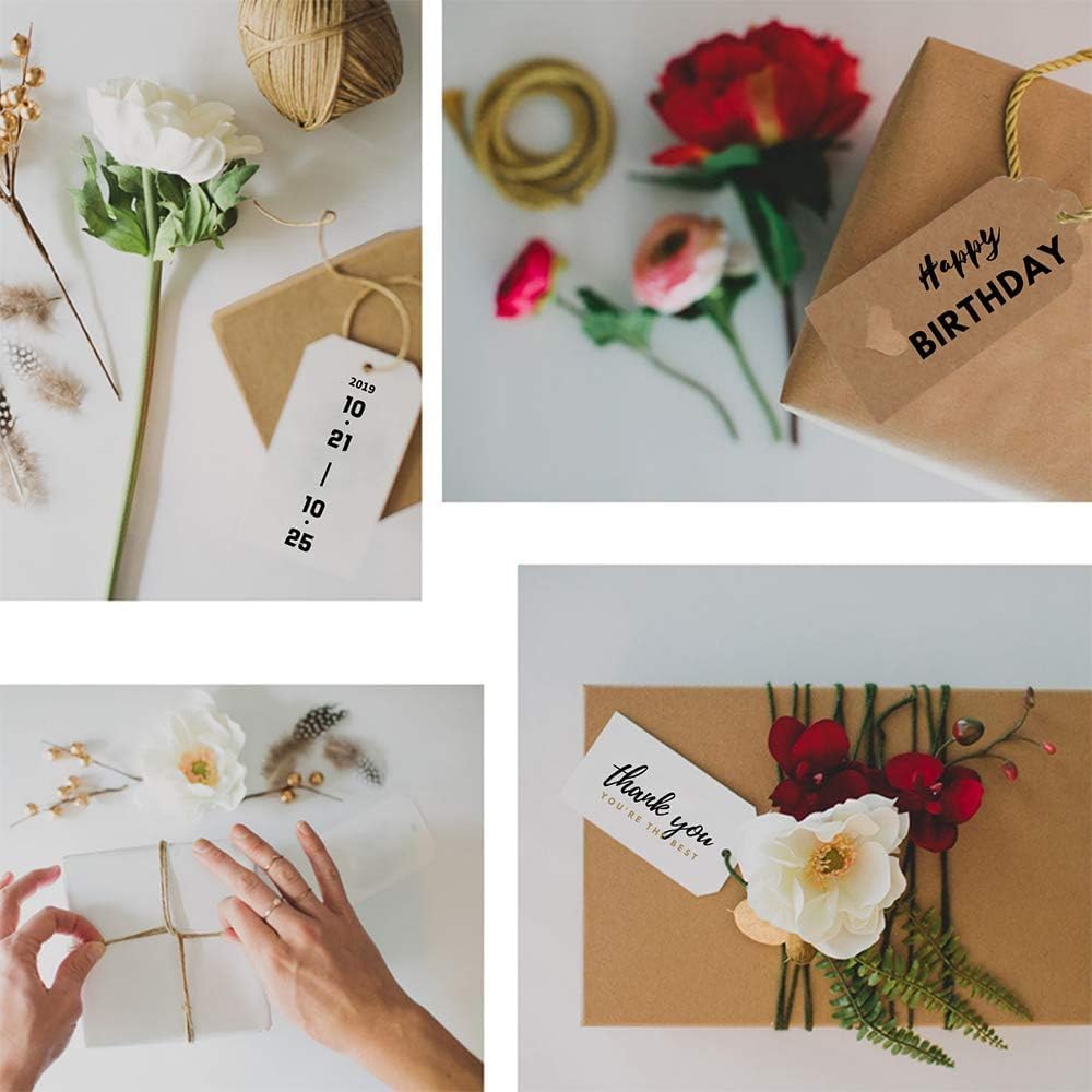 Easy to Hang: Each gift tags set comes with 16 feet red and white string and 16 feet natural jute that has high strength and wear resistance. You can cut the length you need according to your own needs. Each Kraft paper label is designed with a small hole, through which you can hang a rope to make homemade labels