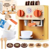 اصنع خيالك: مع ماكينة القهوة الخشبية هذه، يمكنك إنشاء مقهى خاص بك! قم بتقديم اللاتيه والكابتشينو التظاهري لعائلتك وأصدقائك، وحوّل كل وقت لعب إلى مغامرة مقهى ممتعة!