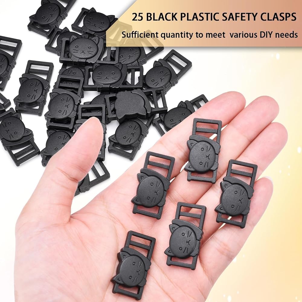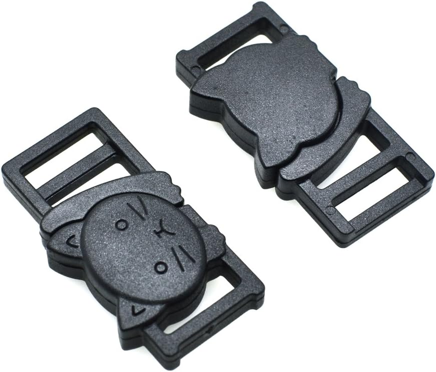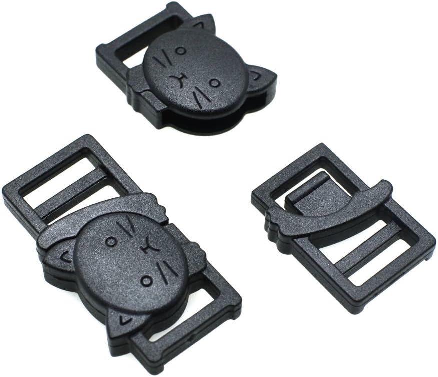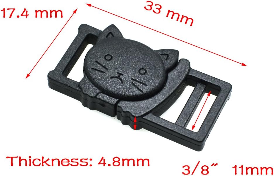 3/8"(11mm) Cat-Head Plastic Safty Breakaway Buckles For Bra Cat Dog Collar Paracord Product Description: These buckles can be used for Collars, Belts, Harnesses, Tactical Backpacks, Tactical Paracord , Camping Hiking, Emergency Survival Wild Accessories etc. The smooth design of the plastic side release buckles disguise its strength and durability
