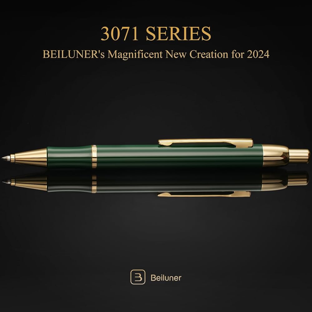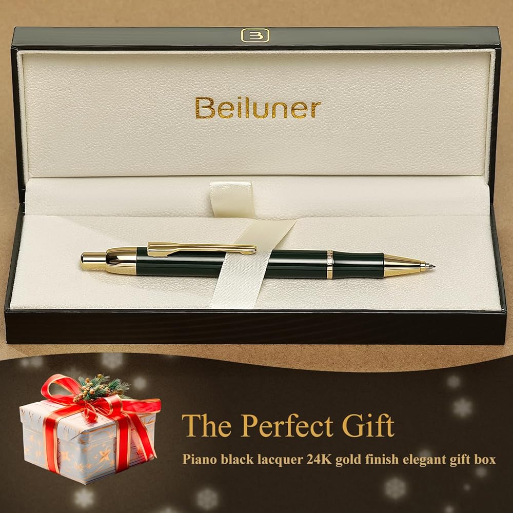 قلم جل فاخر من BEILUNER مع لمسة نهائية من الطلاء الكهربائي بالذهب عيار 24 قيراط، طلاء بيانو أخضر، صناعة يدوية فاخرة، أفضل مجموعة هدايا من أقلام الجل للرجال والنساء