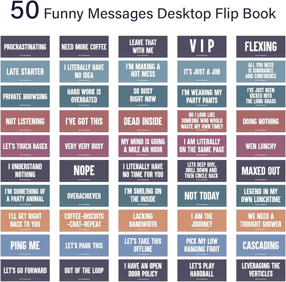 مضحك وعملي: يحتوي هذا الكتاب القلاب على 50 صفحة من اللافتات والرسائل المكتبية المبهجة في 10 ألوان نابضة بالحياة. إنها طريقة رائعة لإظهار شخصيتك والسماح لزملائك في العمل بمعرفة ما تشعر به.