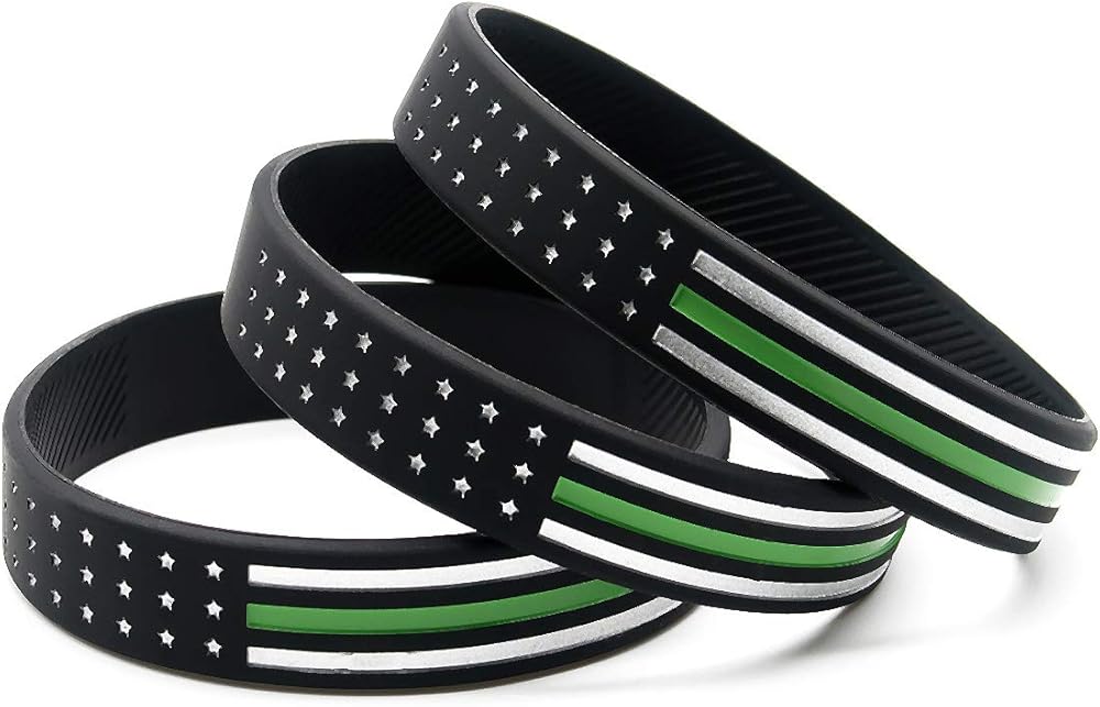 • Conveniently packaged in a bulk 6-pack, these Thin Green Line wrist bands make great giveaway gifts for soldiers, park rangers, border patrol officers, and their family members. Give them away as thank you gifts or Christmas gifts, to thank them for their service to our communities. The Thin Green Line is also used to represent Animal Control Officers, Fish and Wildlife Officers and Court Officers.