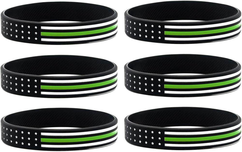 • Pack of 6 Thin Green Line American flag bracelets for recognizing Park Rangers, Conservation Personnel, Border Patrol, and Military members