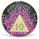 تصميم رمز الذكرى السنوية: تتميز العملة الرصينة بثلاثة شعارات موروثة: "الوحدة، الخدمة، التعافي"، محاطة باللهب الأرجواني، المركز عبارة عن مثلث فارغ مع رقم ليزر 1، مما يدل على طول الرصانة لمدة عام واحد، كما أن عملة التعافي منقوشة أيضًا "وعد الخطوة العاشرة AA" الملهمة .