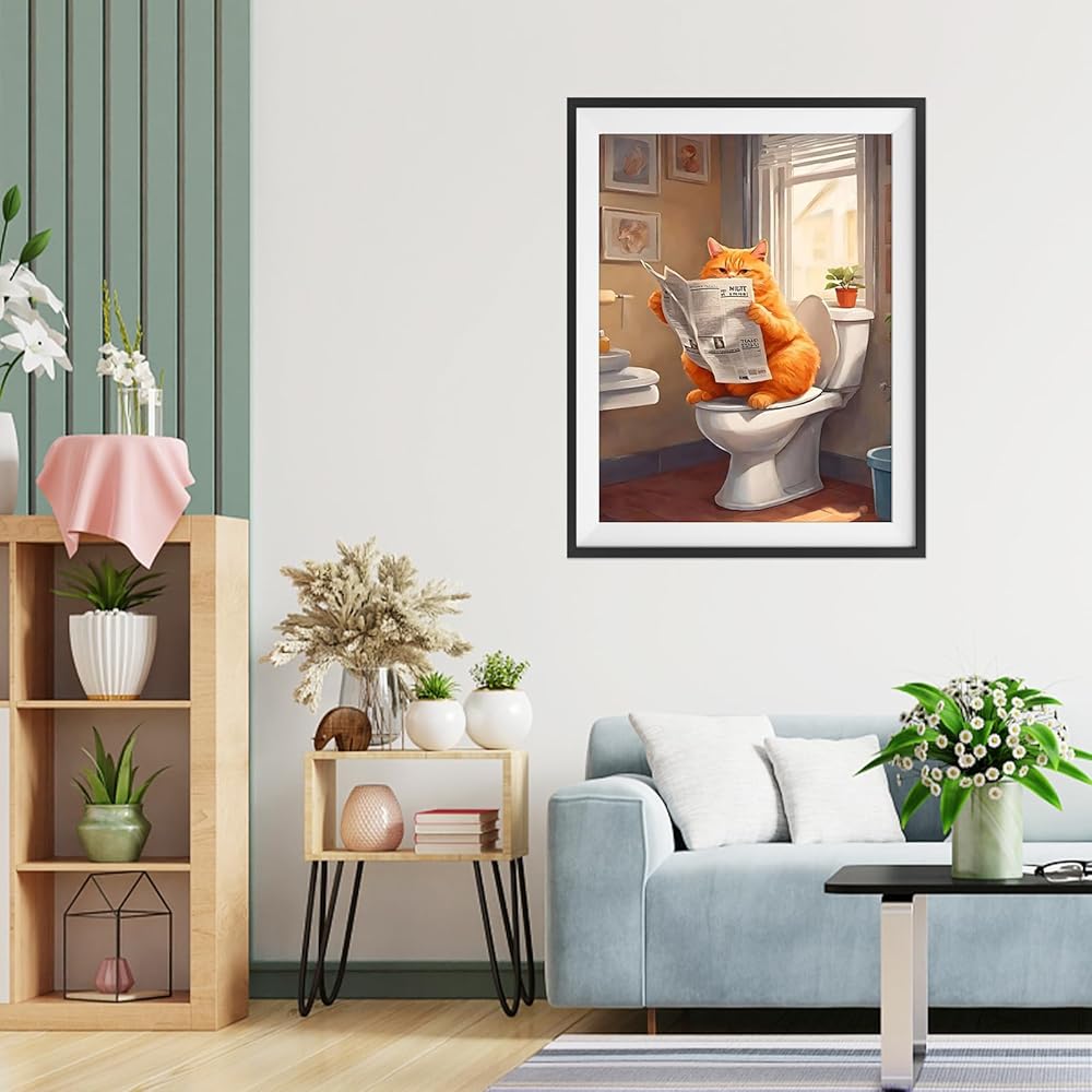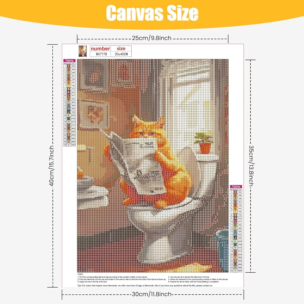 QENSPE Diamond Art Painting Kits for Adults,Cat Reading Newspaper Full Drill Diamond Dots Paintings for Beginners,Round 5D DIY Arts and Crafts Gem Art Painting Kits 12x16inch