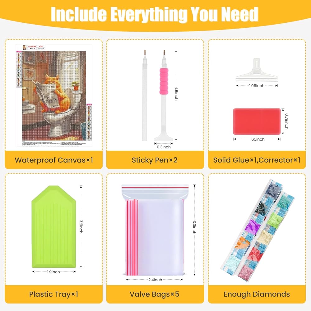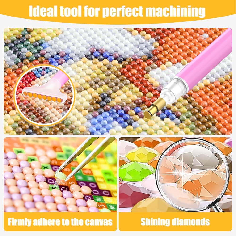 Contain All Tools - Diamond gem art painting kits contain all tools:1 high definition canvas,1 diamond tray,1 big wax,2 diamond pens,1 replaceable correction pen,5 ziplock bags and enought round diamonds, so you don't need to purchase any additional tools.