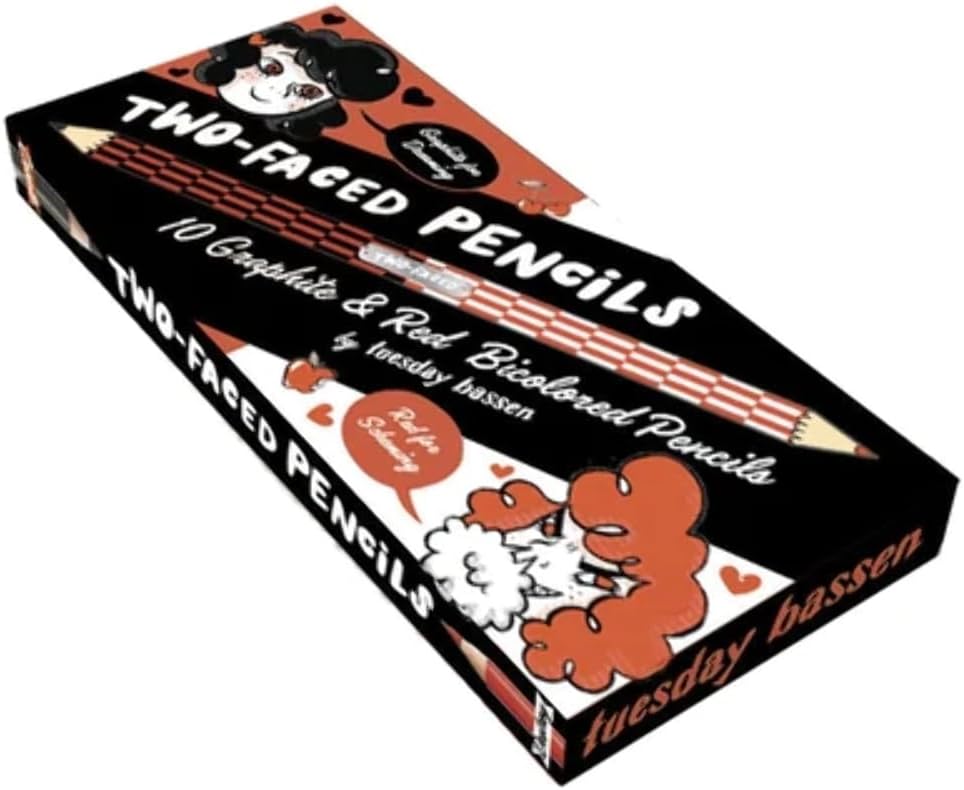 BELOVED ILLUSTRATOR AND DESIGNER: Tuesday Bassen is a creative powerhouse, known for her zines, prints, accessories, and ethically made, size-inclusive clothing line. Fans of Tuesday Bassen and Tuesday of California will love these bicolored pencils!