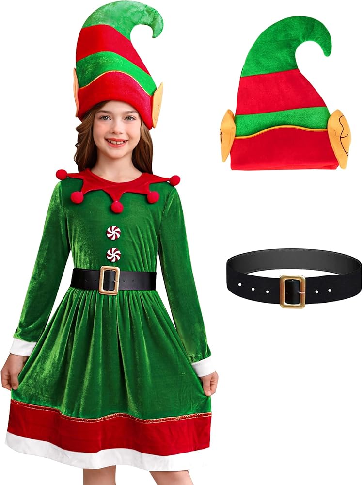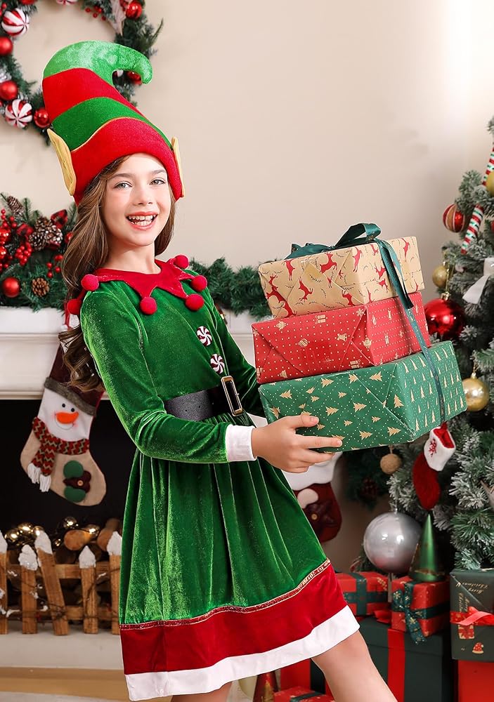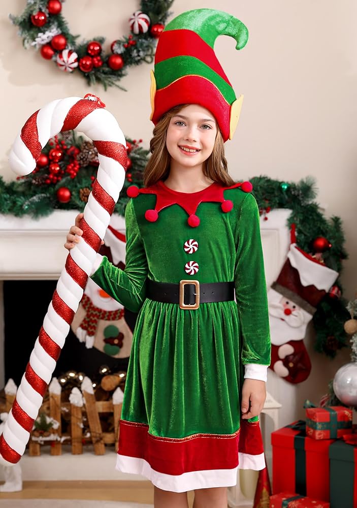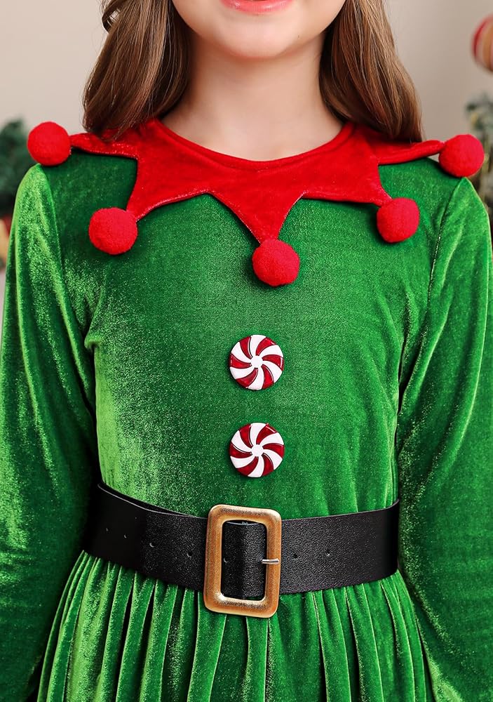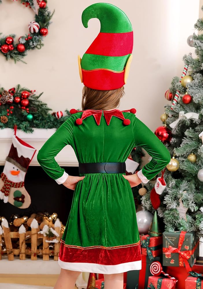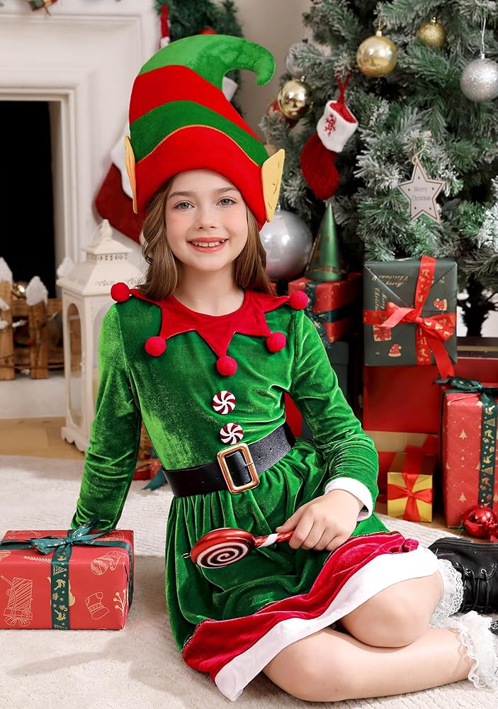زي قزم آسر سحري في كل قطعة - مجموعة أزياء قزم الفتيات لدينا تتضمن 1 × فستان مذهل، 1 × قبعة زي قزم، و1 × حزام قابل للتعديل. تم تصميمها جميعًا لإضفاء الحيوية على سحر عيد الميلاد الغريب.