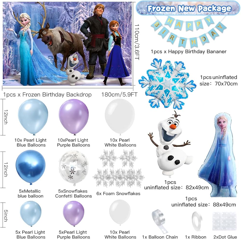 🎀 زينة عيد ميلاد فروزن: (لقد قمنا بتحديث الخلفية المجمدة إلى حجم أكبر) تتضمن ❤ 60 بالونة لاتكس، ❤ 3 بالونات فويل مجمدة، ❤ 1 لافتة عيد ميلاد سعيد، ❤ 1 خلفية مجمدة، ❤ 6 رقائق ثلج رغوية، ❤ قطعتان من نقاط الصمغ، ❤ 1 شريط بالون، ❤ 1 شريط بالون على الوجهين.