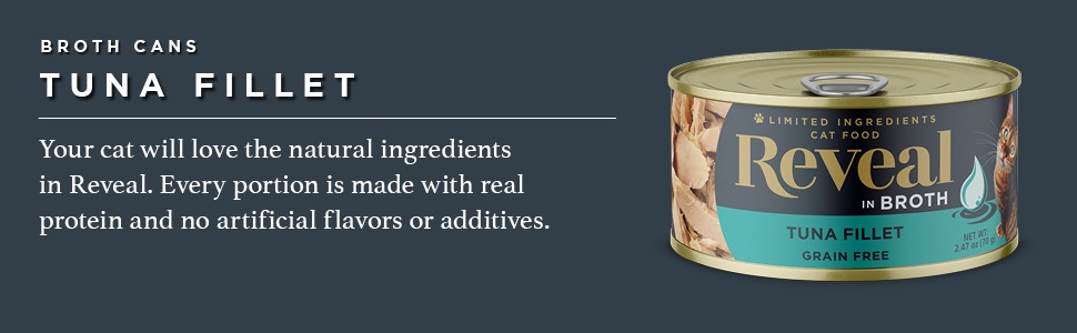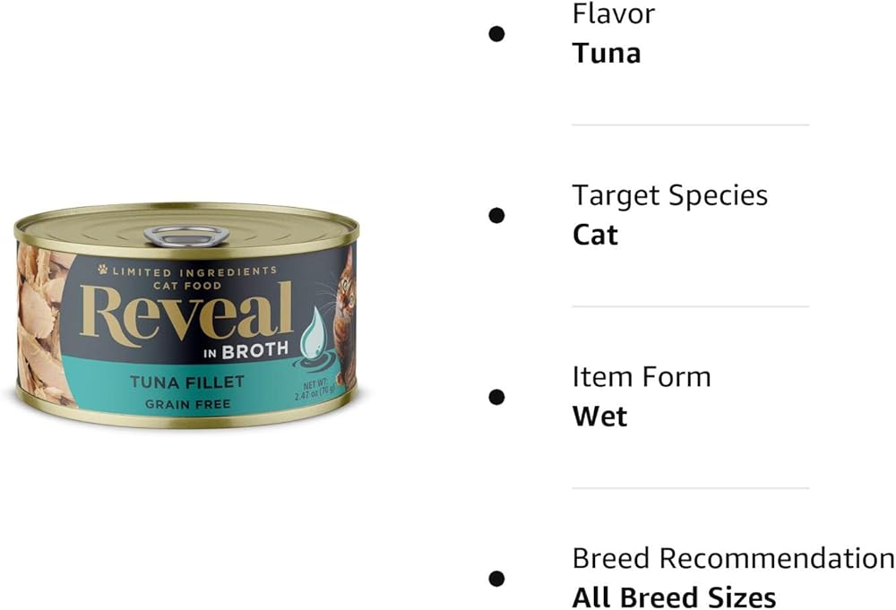 Reveal طعام القطط الرطب الطبيعي، 24 قطعة، خالي من الحبوب، أطعمة معلبة ذات مكونات محدودة للقطط، شرائح التونة في المرق، علب 2.47 أونصة