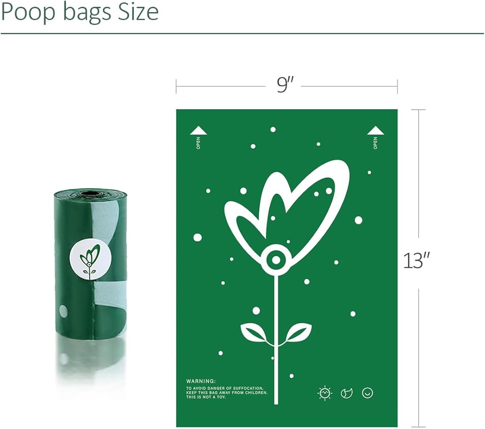 【High Quality Poop Bags】- Dog poop bags are made of premium plastic and strict quality control process, the human friendly and non normal plastic material can be broken down in nature, reducing pollution to the environment.