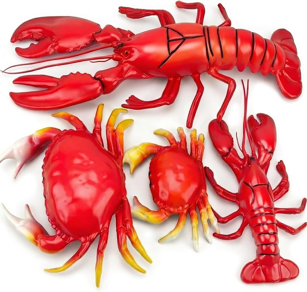 مجموعة مخلوقات الحياة البحرية الكبيرة المزيفة من جريسورث، مجموعة من 4 مخلوقات من جراد البحر وسرطان البحر الاصطناعي من البلاستيك على شكل حيوانات لتزيين المنزل والحفلات، لعبة للأطفال