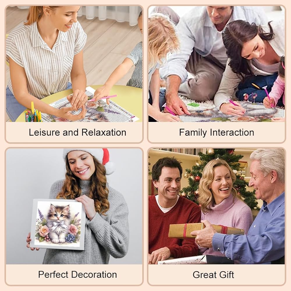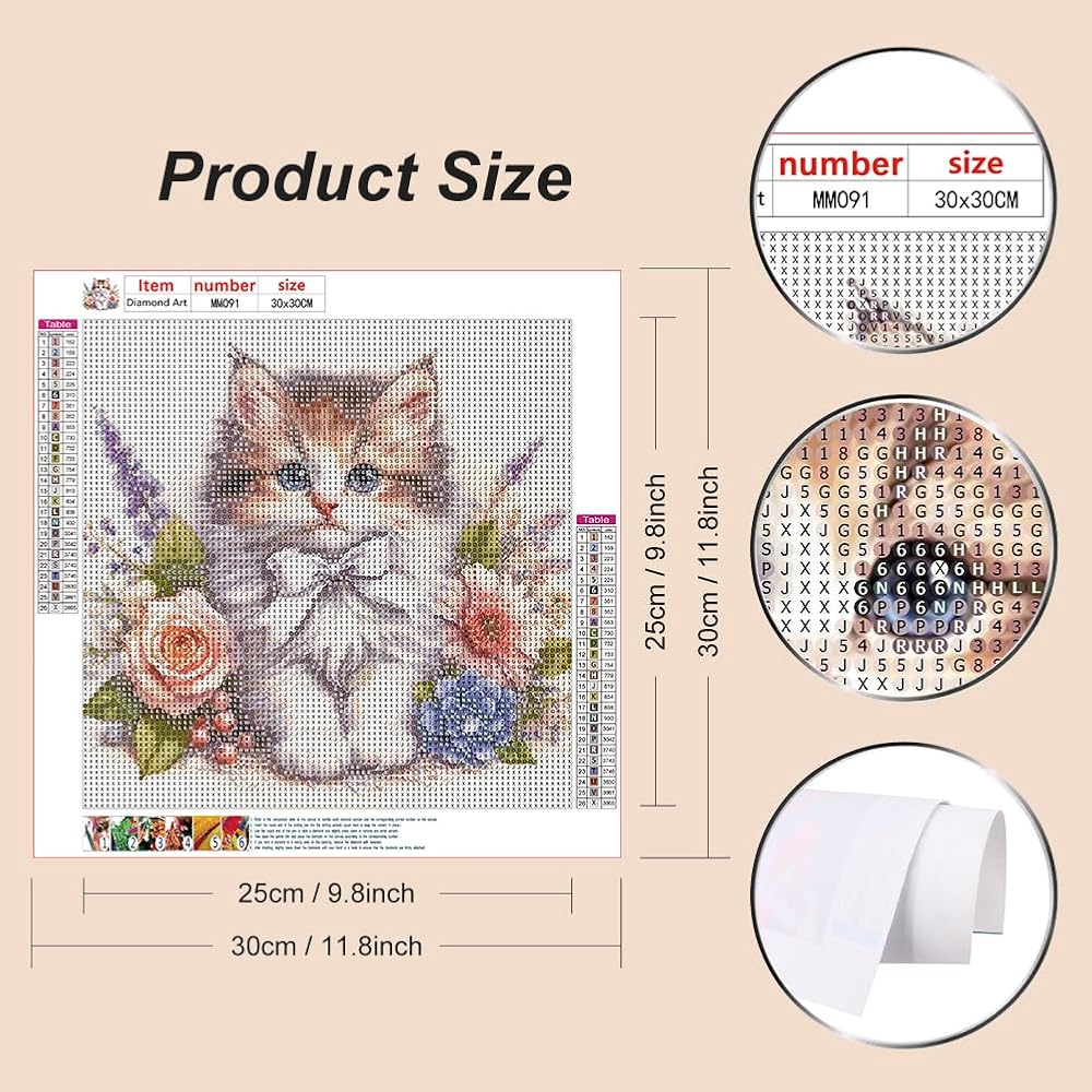 【FULL DRILL】Cat Diamond Painting Kits for Adults, round diamonds cover the whole picture, making the picture more shiny and realistic, it is the most popular DIY decoration at the moment. If you have enough time and patience and like challenging project, this is totally for you