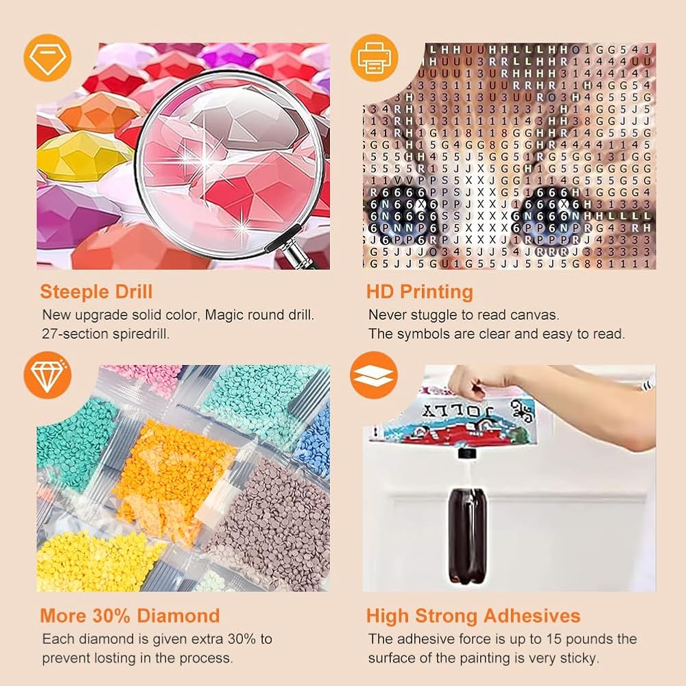 【ECO-FRIENDLY CANVAS】Diamond Painting Kits use high clear printing oil canvas, non-toxic, waterproof, environmental protected, will be never fade, making your room more vivifying and shining in the light