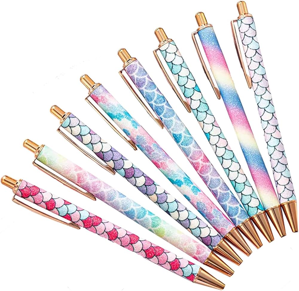 تصميم ملون: أداة كتابة أنيقة مصممة للأشخاص الذين يواكبون الموضة. تحتوي كل مجموعة من أنواع مختلفة من الأنسجة على 8 أقلام حبر جاف بألوان مختلفة، كل قلم حبر جاف متلألئ مزين بلمسات نهائية معدنية مذهلة.