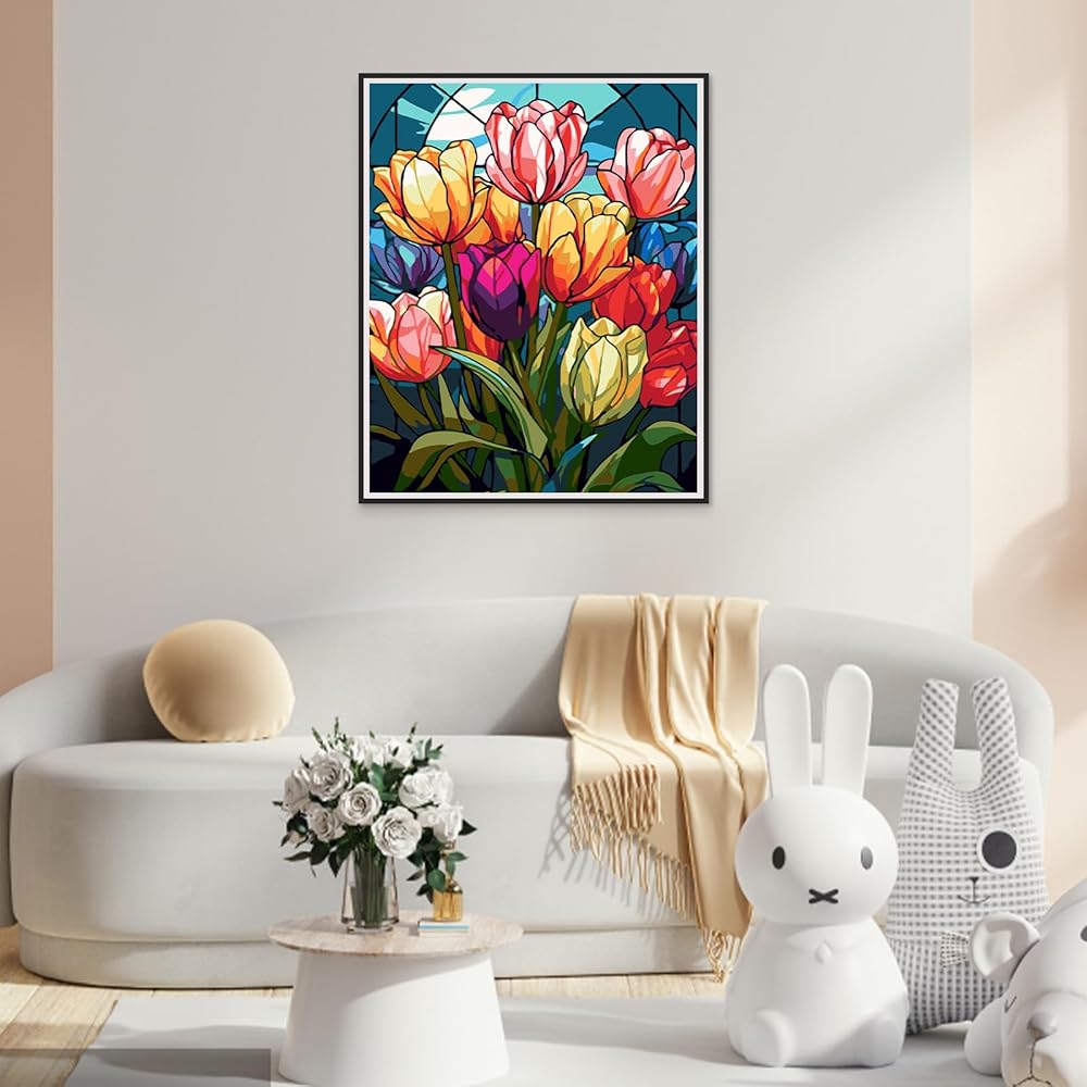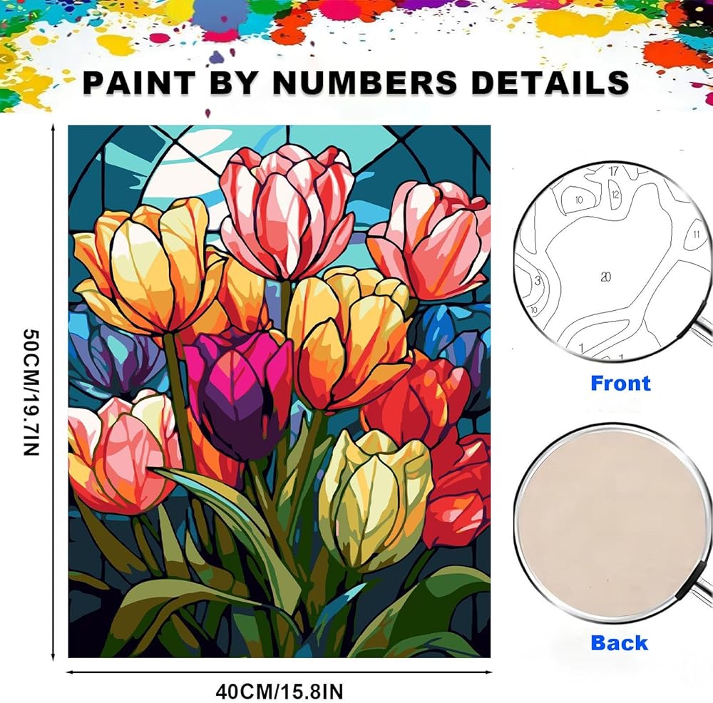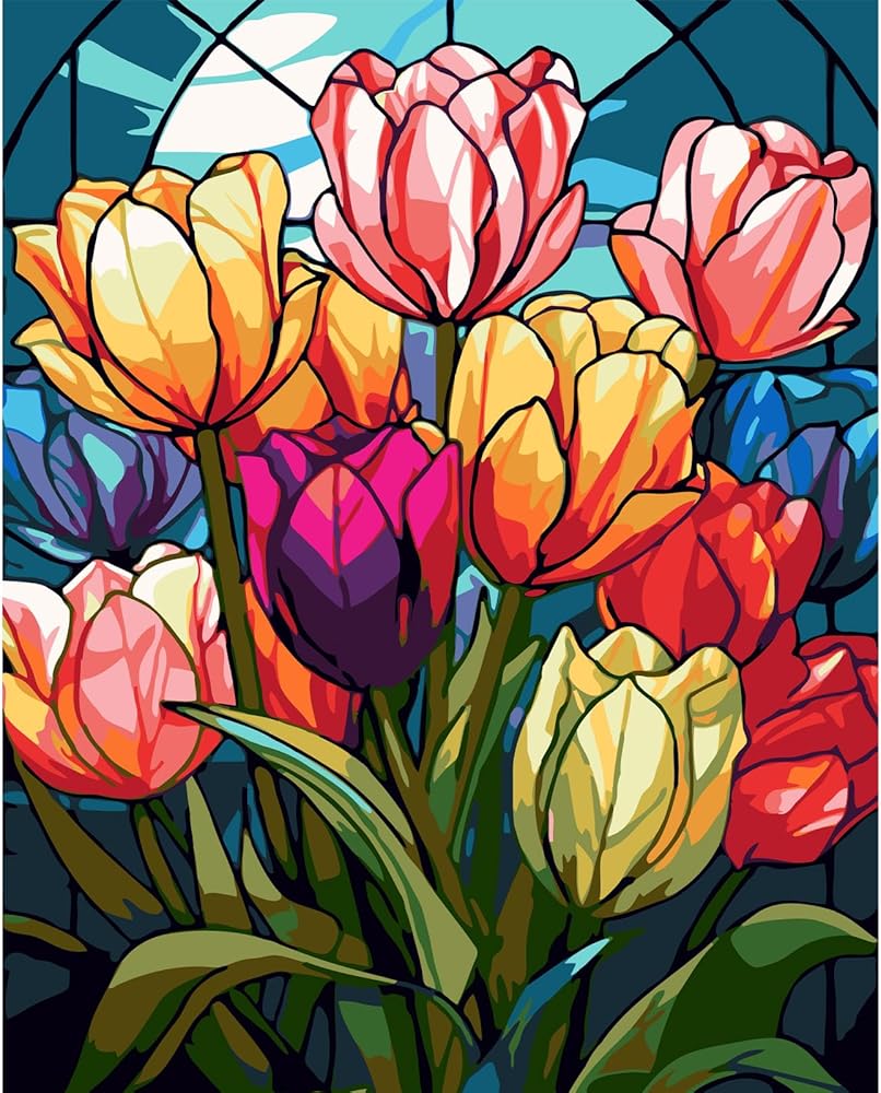 مجموعة طلاء الزهور بالأرقام من QENSPE للبالغين، الطلاء حسب الرقم على القماش للمبتدئين، مجموعات الطلاء الزيتي DIY المناسبة لتزيين الجدران المنزلية مقاس 16 × 20 بوصة