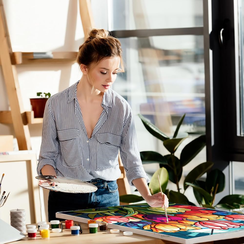 سهلة الطلاء - أرقام الطلاء مناسبة للبالغين والمبتدئين من جميع الأعمار. كل ما عليك فعله هو العثور على نفس الرقم على القماش مثل مجموعة صبغة الأكريليك، ثم استخدام فرشاة لتلوين المنطقة المقابلة. لا حاجة لمزج الألوان.
