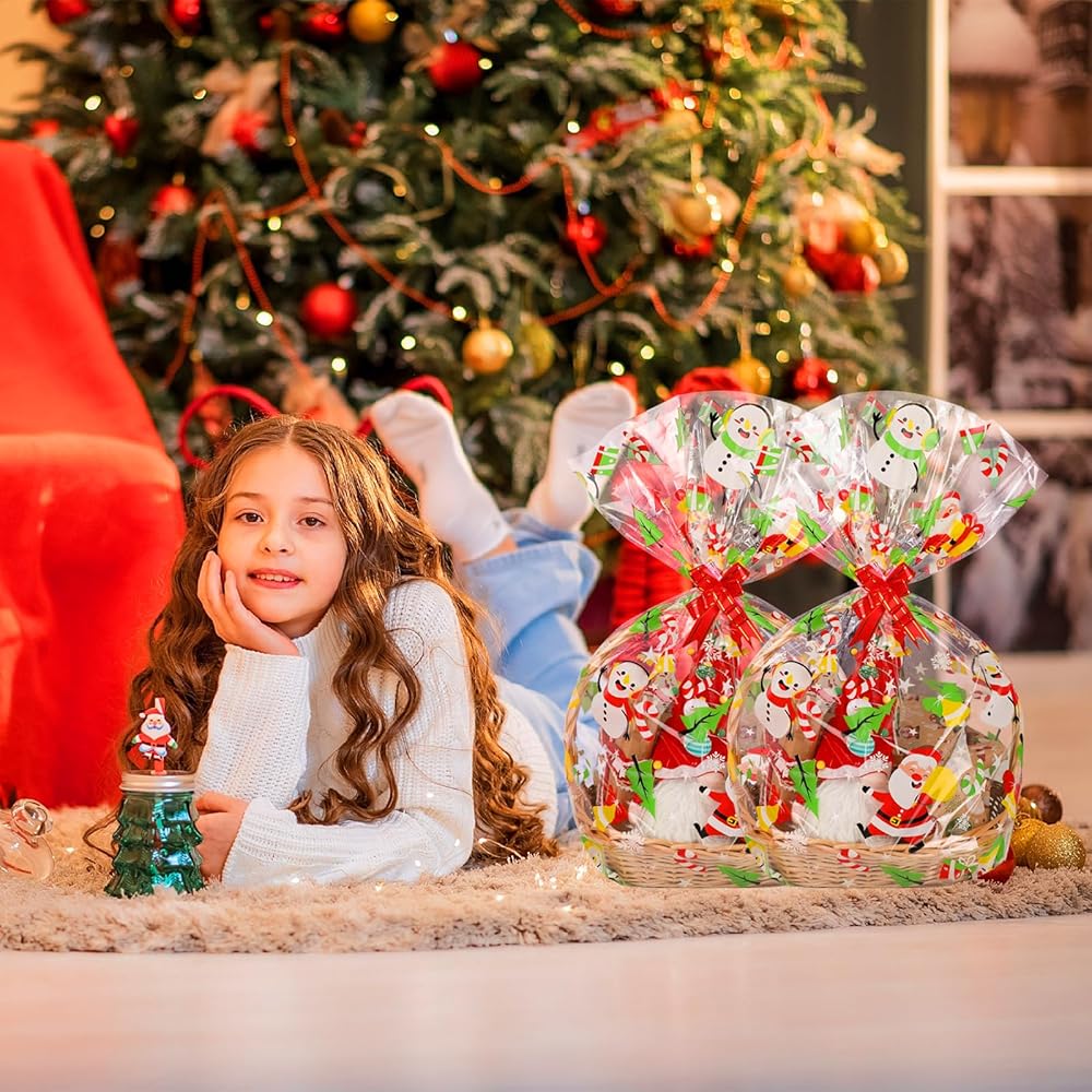 استخدامات متعددة: تعتبر أكياس السيلوفان الشفافة هذه ديكورات مثالية تمامًا لتغليف سلال عيد الميلاد والهدايا والألعاب والحلوى والبسكويت والخبز والحاويات الأخرى. كما أنها مناسبة لأعياد الميلاد والحفلات والذكرى السنوية ورأس السنة وغيرها من مناسبات المهرجانات والعطلات