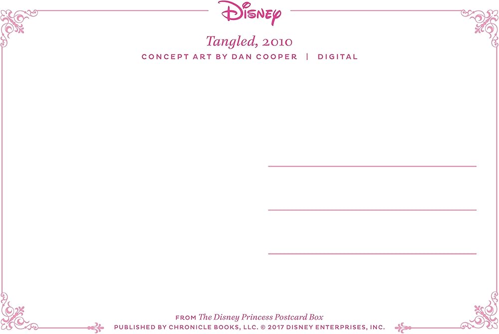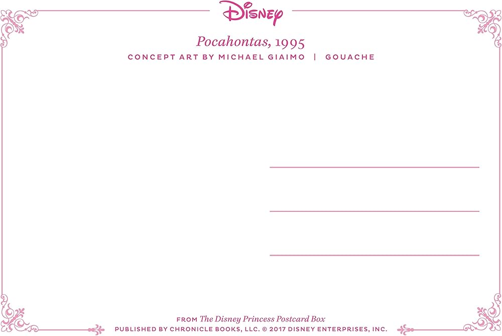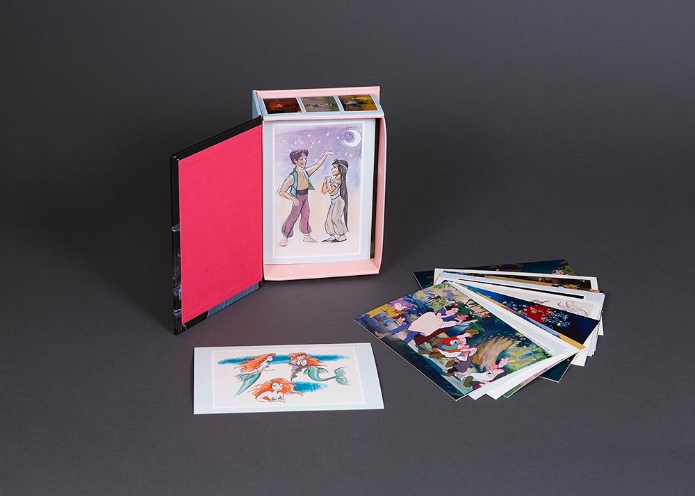 Disney Princess Postcard Box is a vibrant box of 100 postcards celebrating all eleven official Disney Princesses. These unique Disney notecards include Snow White, Cinderella, Aurora, Ariel, Belle, Jasmine, Pocahontas, Mulan, Tiana, Rapunzel, and Merida. Featuring concept art-including some never-before-published work-as well as final frames and animation concept art, this beautiful collector's item is sure to delight Disney fans of all ages. - Set into a gorgeous box with a satin ribbon - Fans can keep postcards to display or send them to loved ones to share the beauty