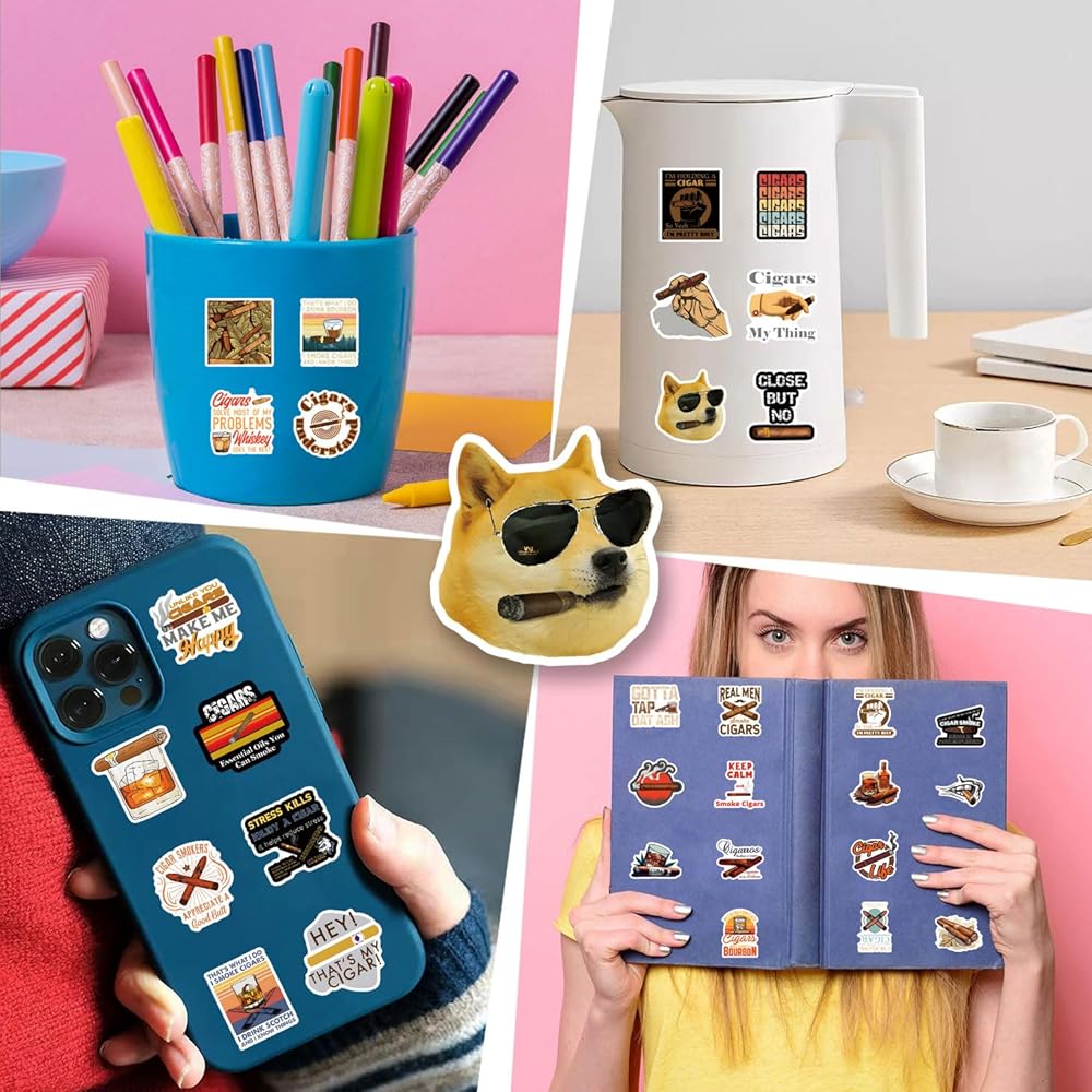 مجموعة 62 قطعة من ملصقات السيجار، ملصقات جمالية من الفينيل مقاومة للماء لزجاجة المياه، والكمبيوتر المحمول، والهاتف، ولوح التزلج، وسجل القصاصات، ومصد للأطفال والمراهقين والبالغين من أجل ديكور مستلزمات الحفلات