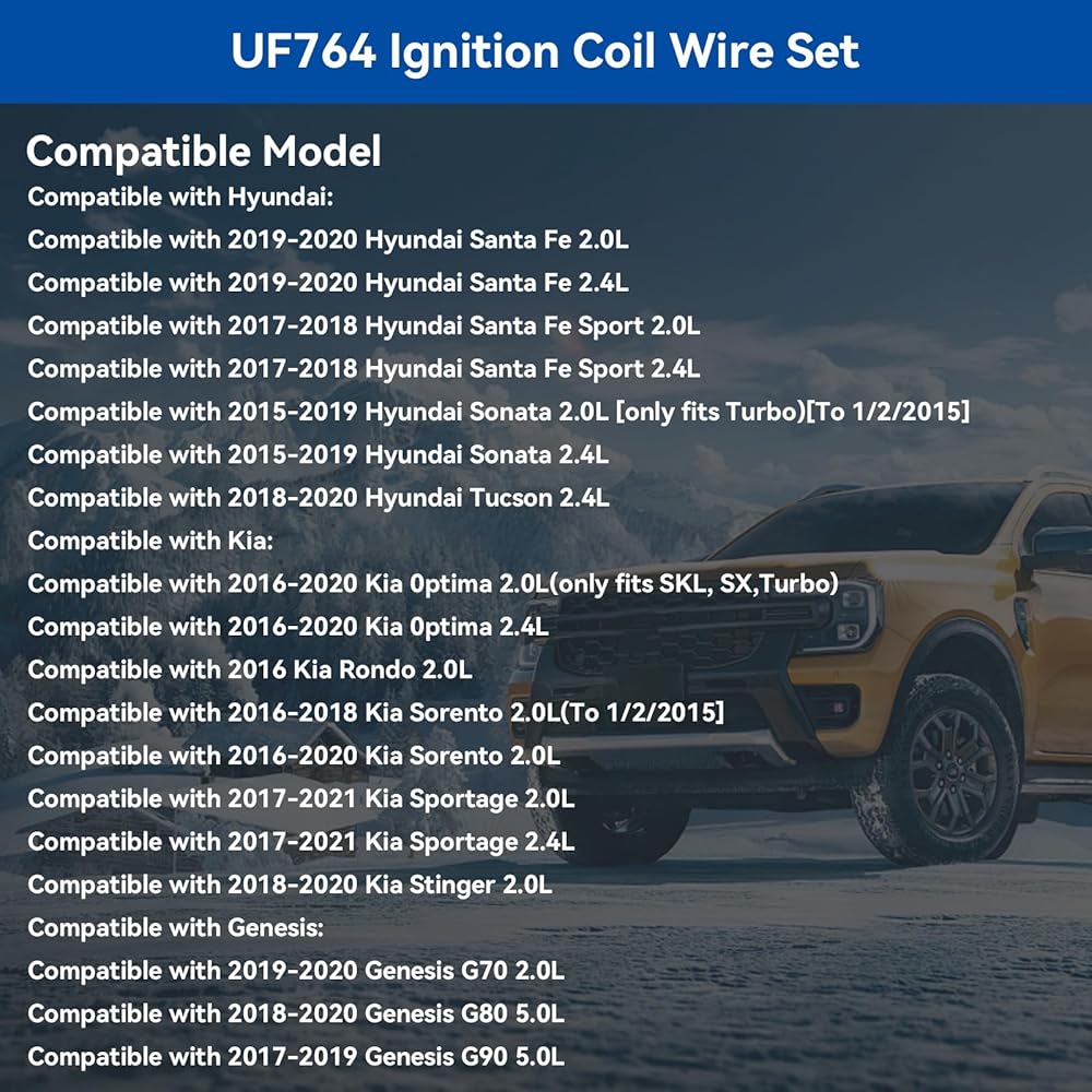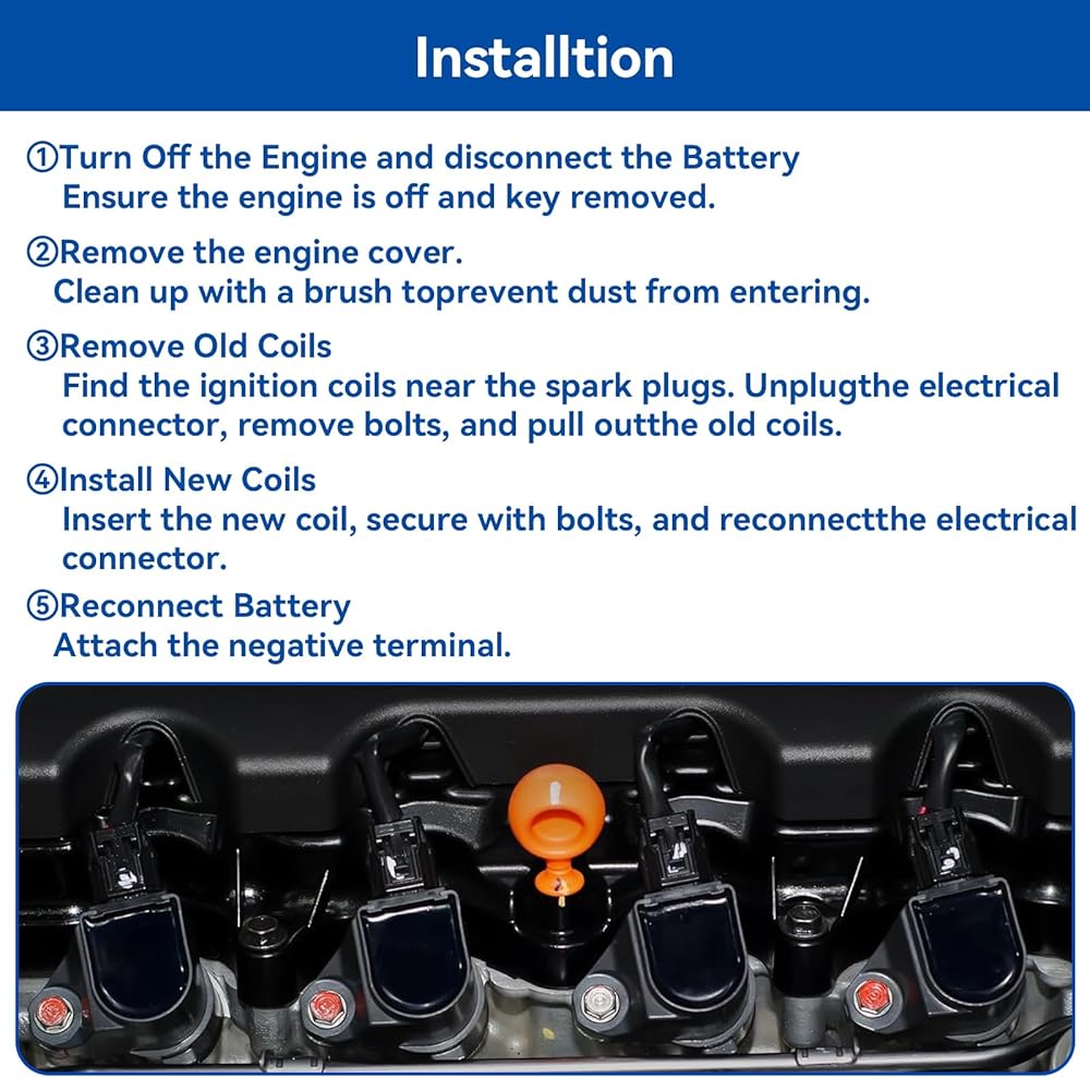 【Ignition Coil Set】UF487 models often providing a better fit and potentially improved performance in specific vehicle application. These coils can improve fuel economy, increase engine power, reduce emissions, and make for smoother idling and easier starting.