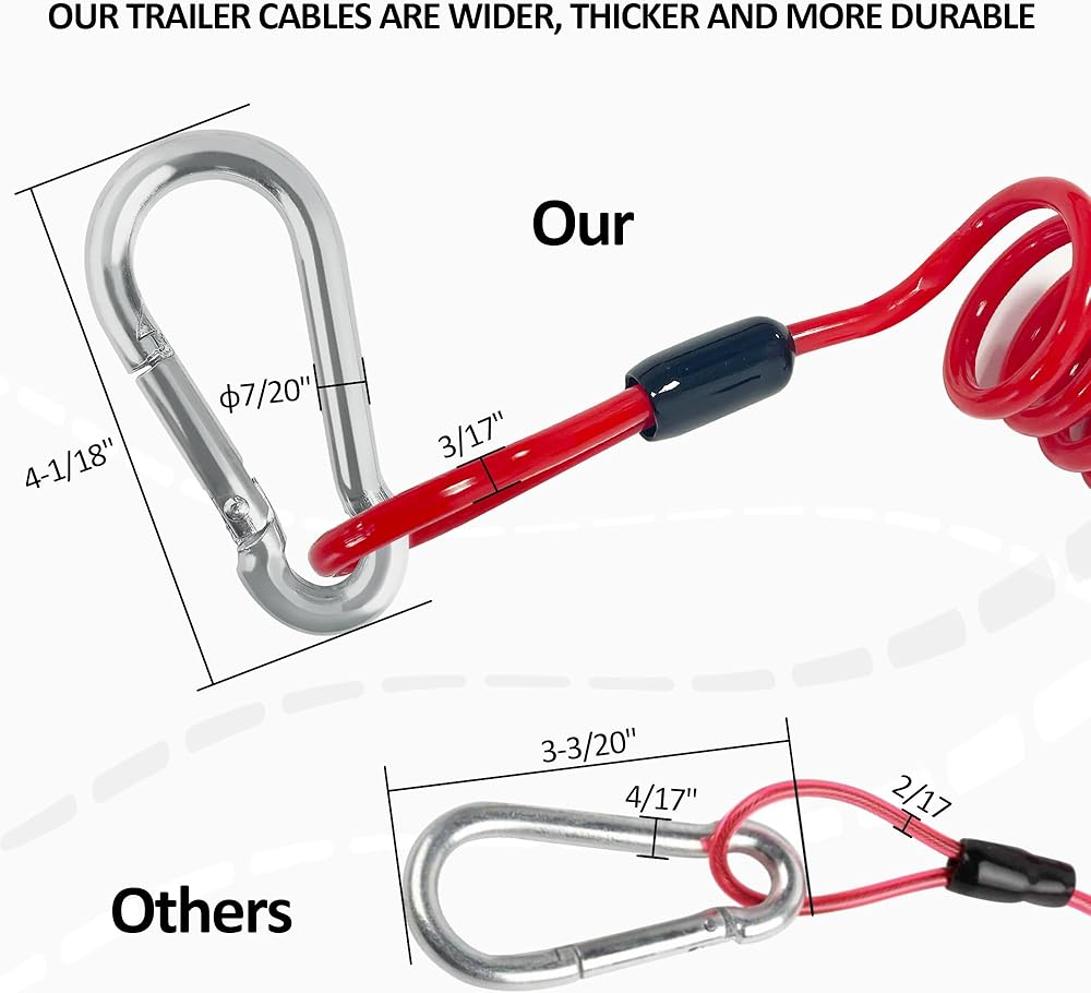 متين وقوي: هذا الكابل مصنوع من الفولاذ المضفر ومطلي بمادة البولي يوريثان المقاومة للأشعة فوق البنفسجية، مما يجعله مقاومًا للصدأ والتآكل. يعزز هيكلها القوي سلامة المقطورة الخاصة بك أثناء القطر