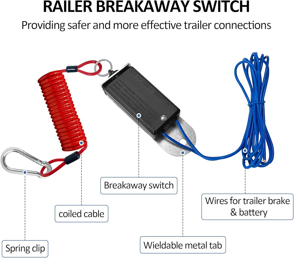 سهل التركيب: خذ المنتج ثم ضع المفتاح على المقطورة. قم بتوصيل سلك واحد بالطرف الموجب لصندوق البطارية والسلك الآخر بالطرف الموجب لنظام الفرامل الكهربائية للمقطورة. وأخيرًا، قم بتثبيت الكابل في السيارة باستخدام مشبك. مناسبة لجميع أنواع المقطورات تقريبًا