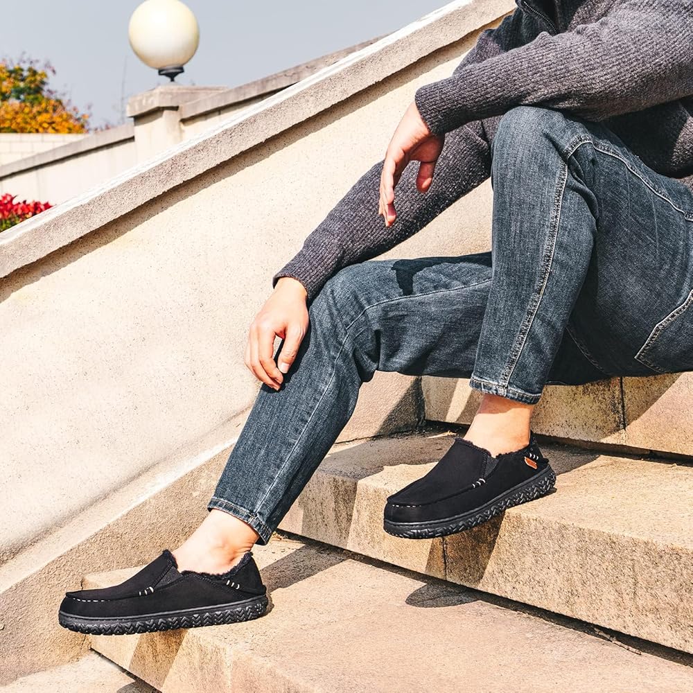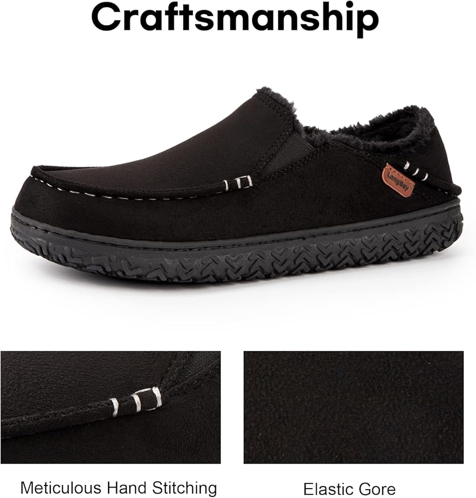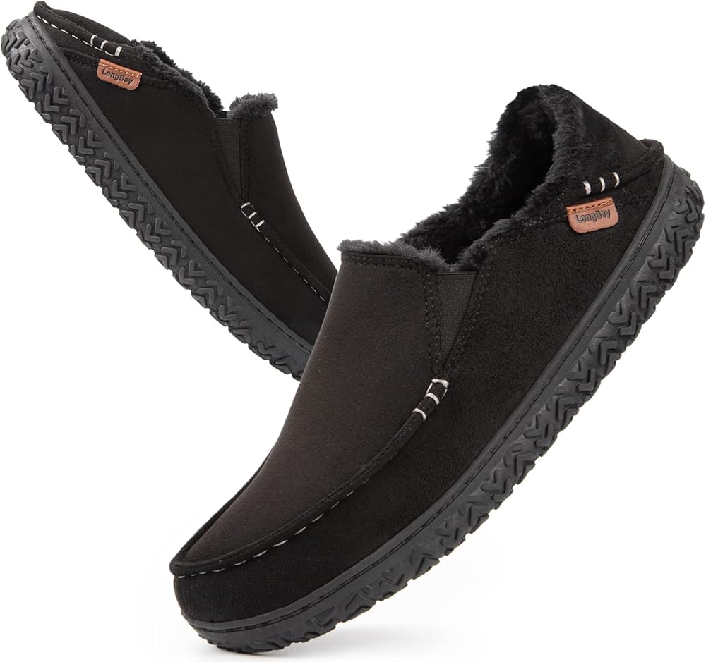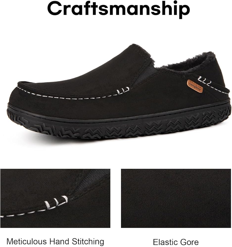 SUPERIOR SUPPORT: LongBay men's moccasin slippers feature an 80D memory foam and latex EVA filling, providing superior support and cushioning for your feet, making them perfect for all-day wear. The rubber outsole is highly sturdy, non-slip, and suitable for both indoor and outdoor.