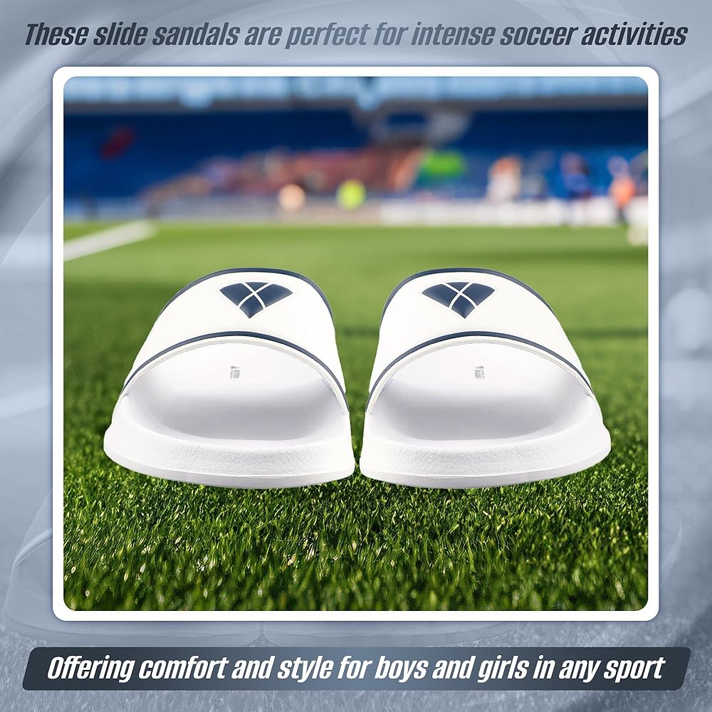 Vizari Kids Ss' Soccer Slide Sandals For Boys And Girls (White, Little Kid 3)