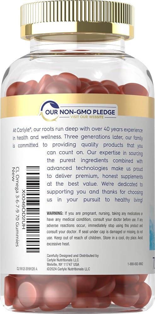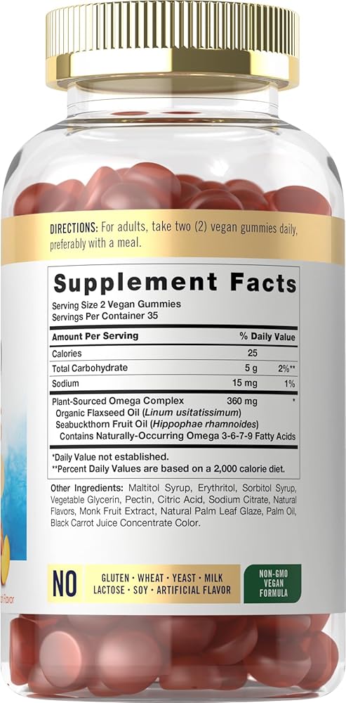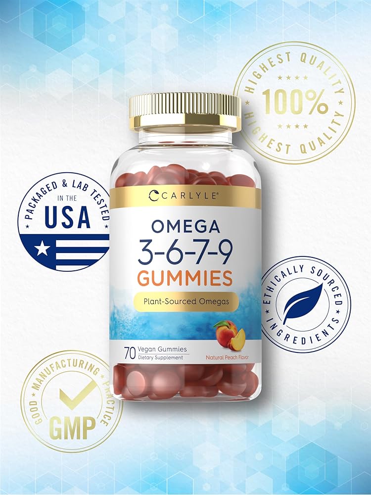 Carlyle Omega 3 6 7 9 Gummies | 70 Count | Vegan Plant Sourced Supplement | Peach Flavor