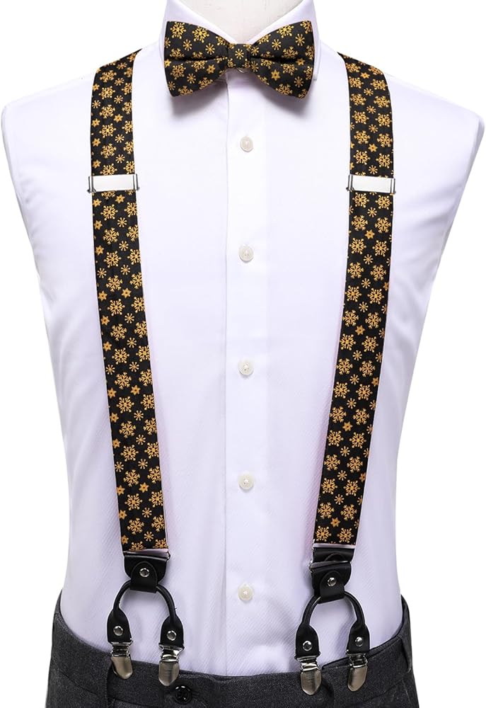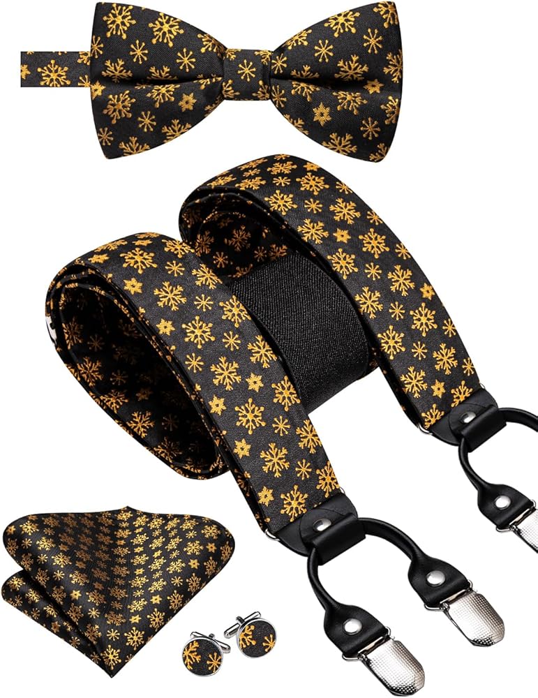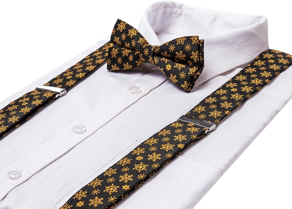 Complete Set: This Christmas Men's Suspender set includes pre-tied bow tie,handkerchief,and cufflinks,ensuring you have everything you need for a polished and festive look