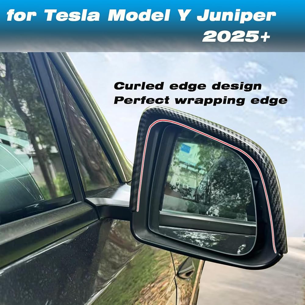غطاء حماية لمرآة الرؤية الخلفية من Tesla Model Y Juniper، غطاء مرآة جانبية ملحقات خارجية تناسب طراز 2025 Y Juniper (نمط ألياف الكربون اللامعة العرعر الخاص بي)