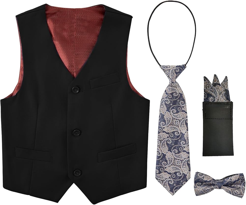Boys Suit Vest Formal 4 Piece Classic Vest and Tie Set