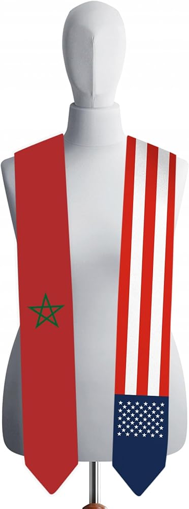 72 Inch Morocco Flag and USA Flag Graduation Sash Unisex Adults Graduation Stole Scarf International Class of 2024 (Not Include Baccalaureate Gown and Hat)
