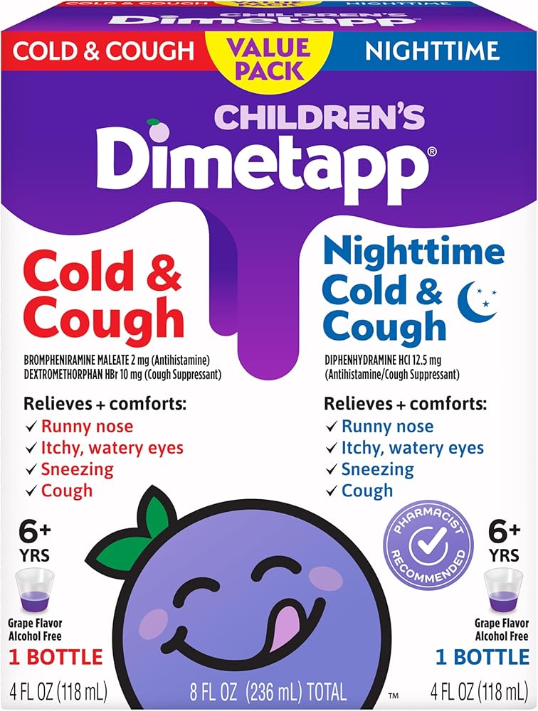 PHARMACIST RECOMMENDED BRAND: Dimetapp's products are safe and effective children's cold medicines formulated to pack a punch against stuffy, runny nose, itchy, watery eyes, sneezing and cough symptoms