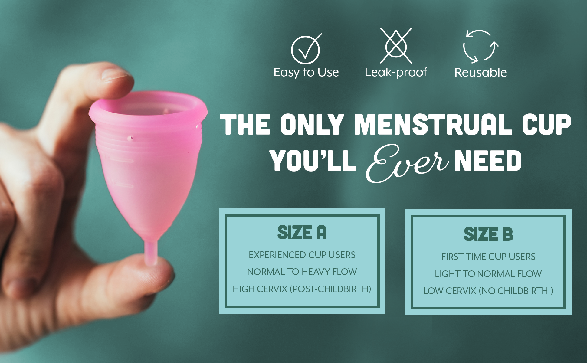 قوية عندما تحتاجين إليها، ستبقى أكواب الحيض الكبيرة لدينا في مكانها، لذلك لن تقلق بشأن التسربات أثناء الركض الطويل، وفصول اليوجا، وحفلات حمام السباحة، وحتى اجتماعات السباحة.