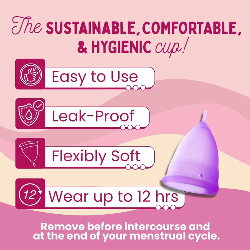 خالية من التسرب وسهلة التنظيف، كما أن أكواب الدورة الشهرية القابلة لإعادة الاستخدام للنساء ذات التدفق الثقيل تأتي أيضًا مع حقيبة نظافة إضافية لطيفة لسهولة النقل.
