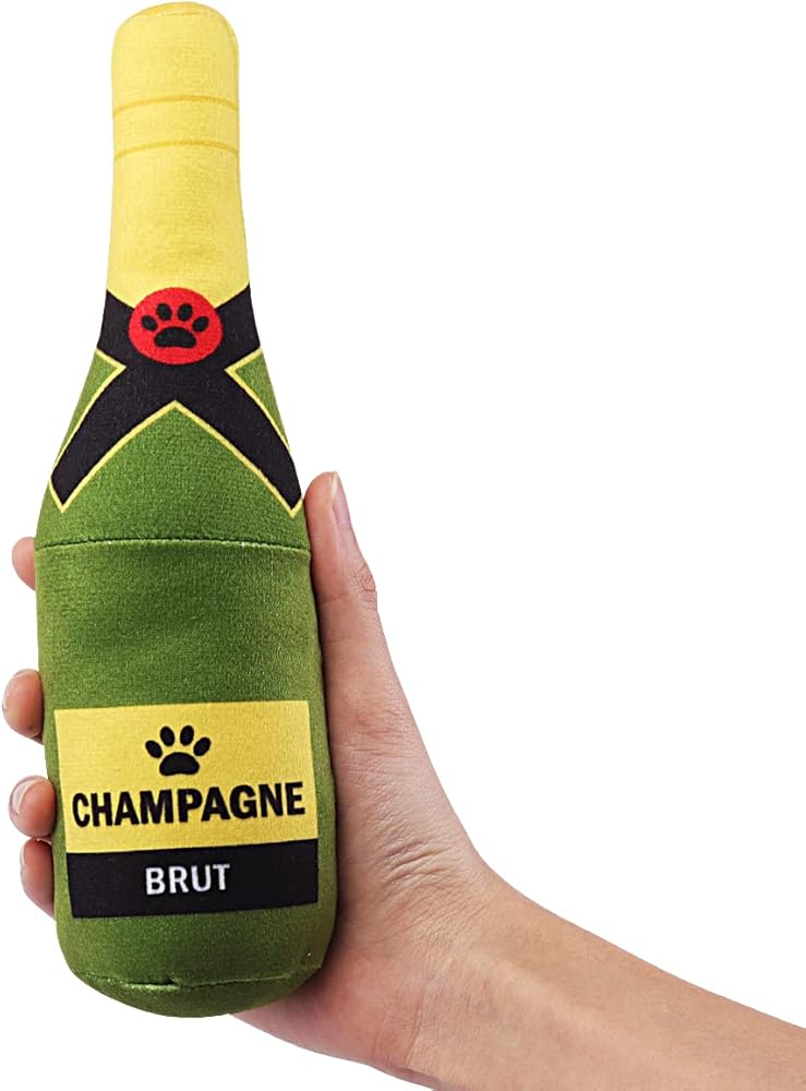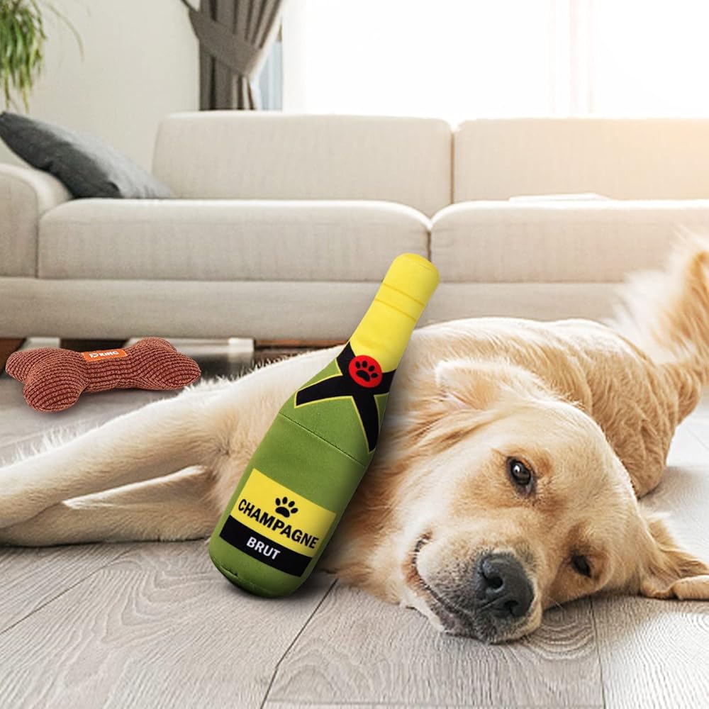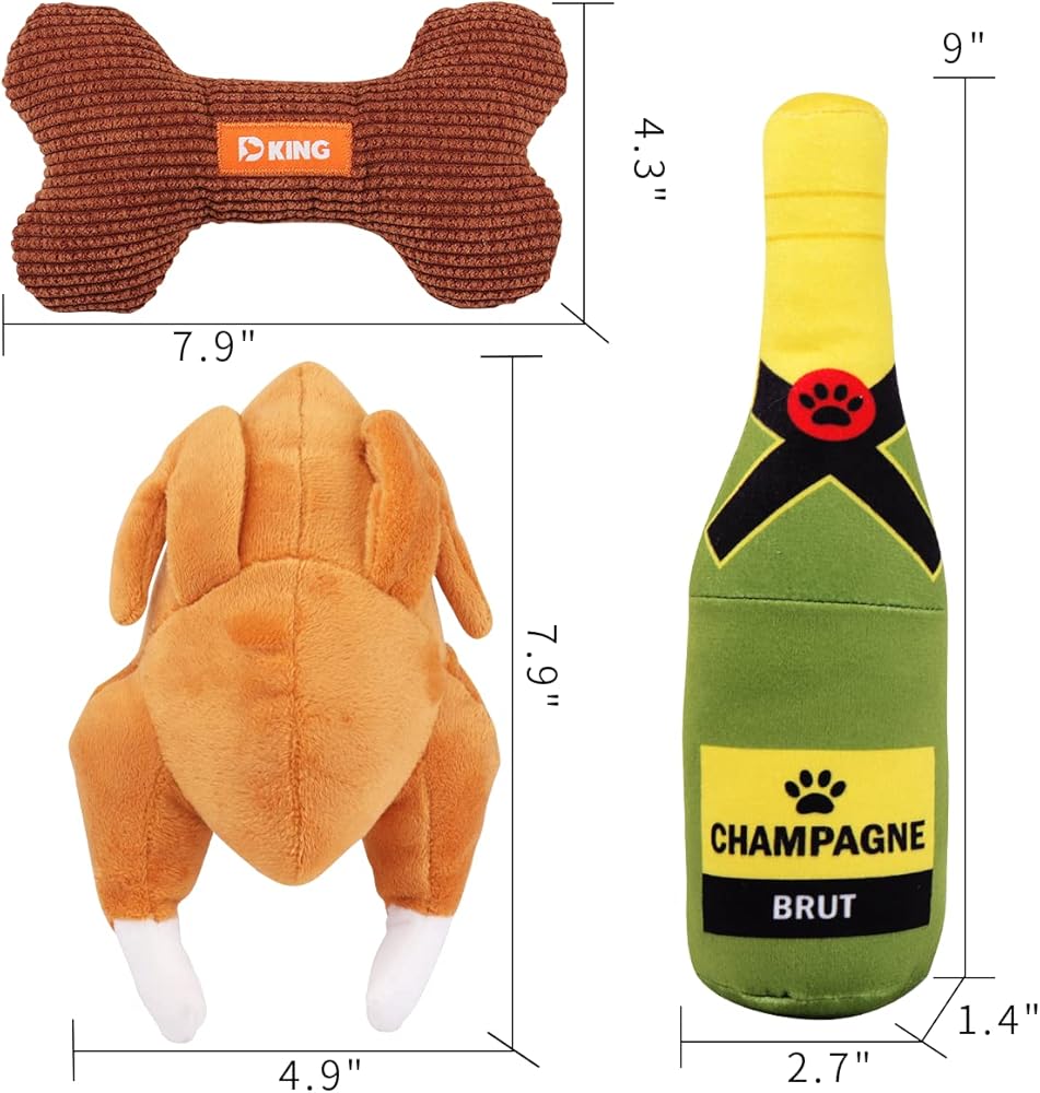 KuddelMuddel Squeaky Plush Fun Dog Toys, Stuffed Parody Bone Chicken Champagne for Medium, Small and Large Breed, for Dog Holiday Birthday Party Gift (3 Pack)