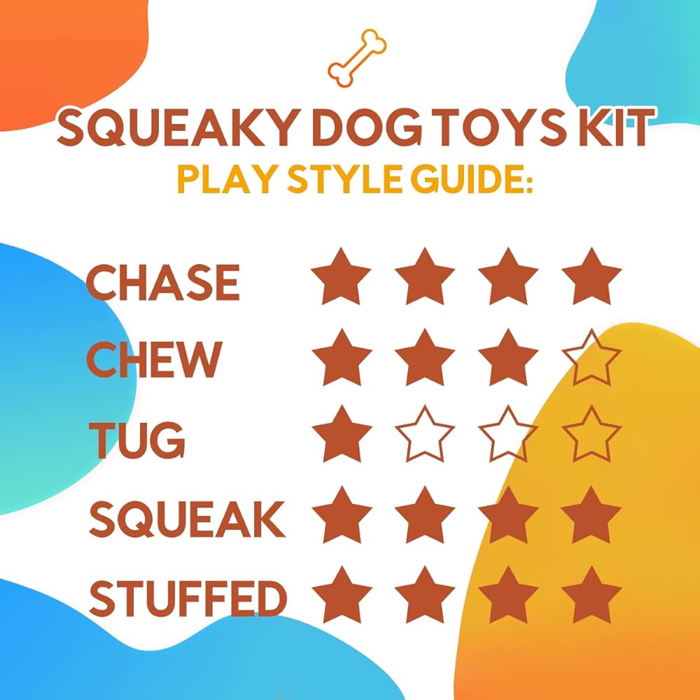[Squeakers]: each toy features a built-in squeaker to excite dogs. The cute styles add extra entertainment, making playtime hours of fun.