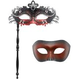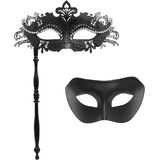 • القناع التنكري للنساء مصنوع من معدن تخريمي مع أحجار الراين المتلألئة، عملية القطع بالليزر، لامع ومريح في الارتداء؛ الكمامة التنكرية للرجال مصممة لتتناسب مع الكمامة النسائية، بسيطة وأنيقة، مصنوعة من البلاستيك، خفيفة الوزن وسهلة الارتداء