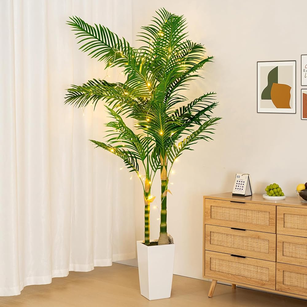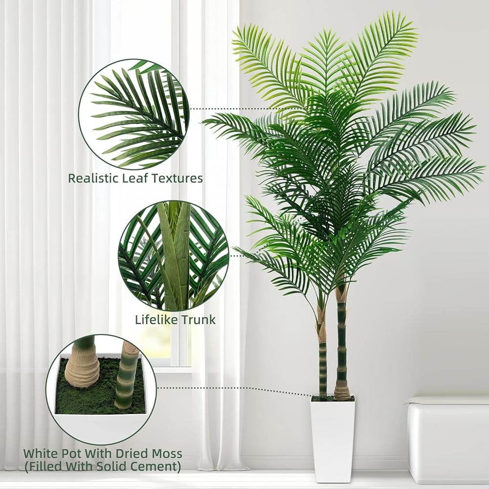 تصميم واقعي: أوراق الريش المقوسة مصنوعة من نسيج حريري مطاطي متين مع نسيج نخيل واقعي لتقليد مظهر شجرة النخيل الحقيقية بشكل مثالي. أصيص زرع أبيض مع طحالب مقلدة يعزز المظهر الواقعي للشجرة. تخلق هذه الشجرة الاصطناعية التي يبلغ طولها 6 أقدام أجواء الجنة الاستوائية، مما يسمح لك بالاستمتاع بجمال الطبيعة على مدار السنة. تأتي شجرة نخيل القصب الذهبي مع وعاء أبيض مقاس 15.75 بوصة، مما يوفر عليك تكلفة شراء وعاء إضافي.